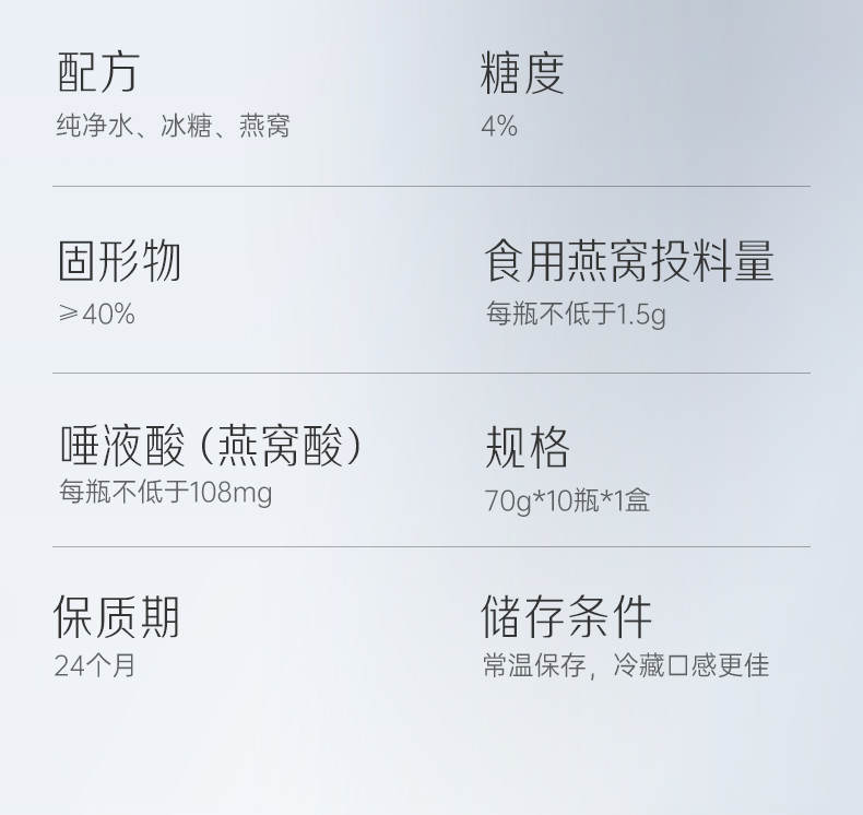 商品名称:YANPALACE/燕之屋畅享款冰糖官燕礼盒70g*10瓶
