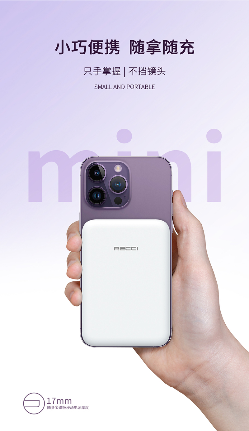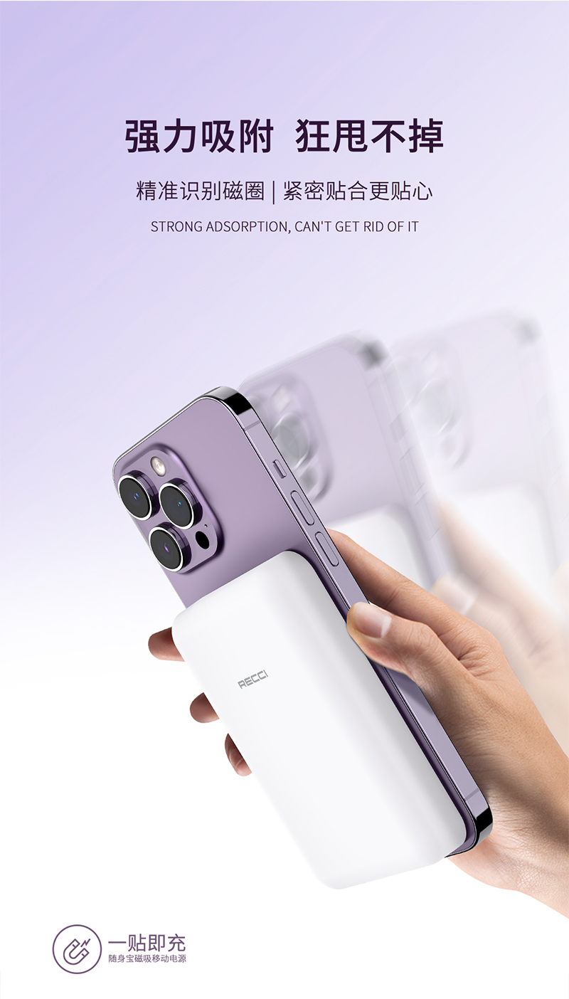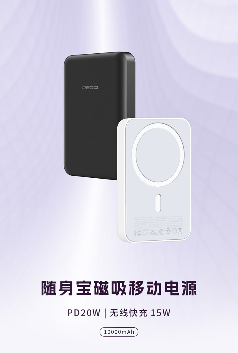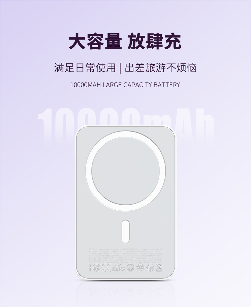 Recci/锐思10000mAh薄至随身宝磁吸移动电源RPB-W09