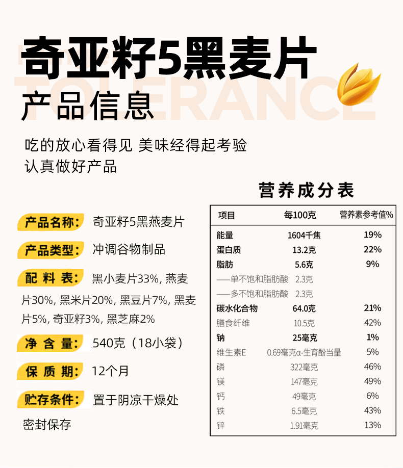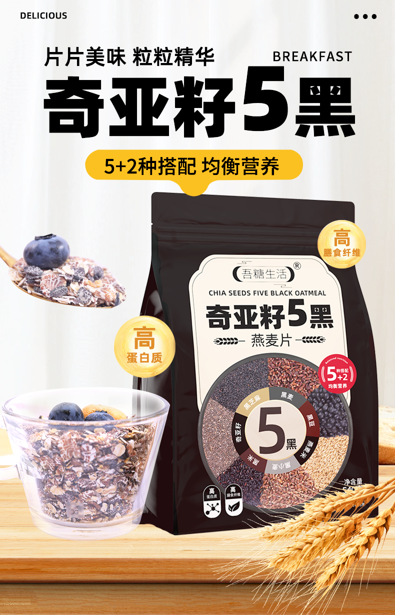 商品名称:吾糖生活奇亚籽5黑燕麦片540g