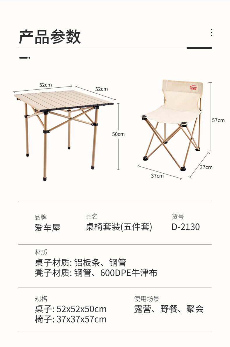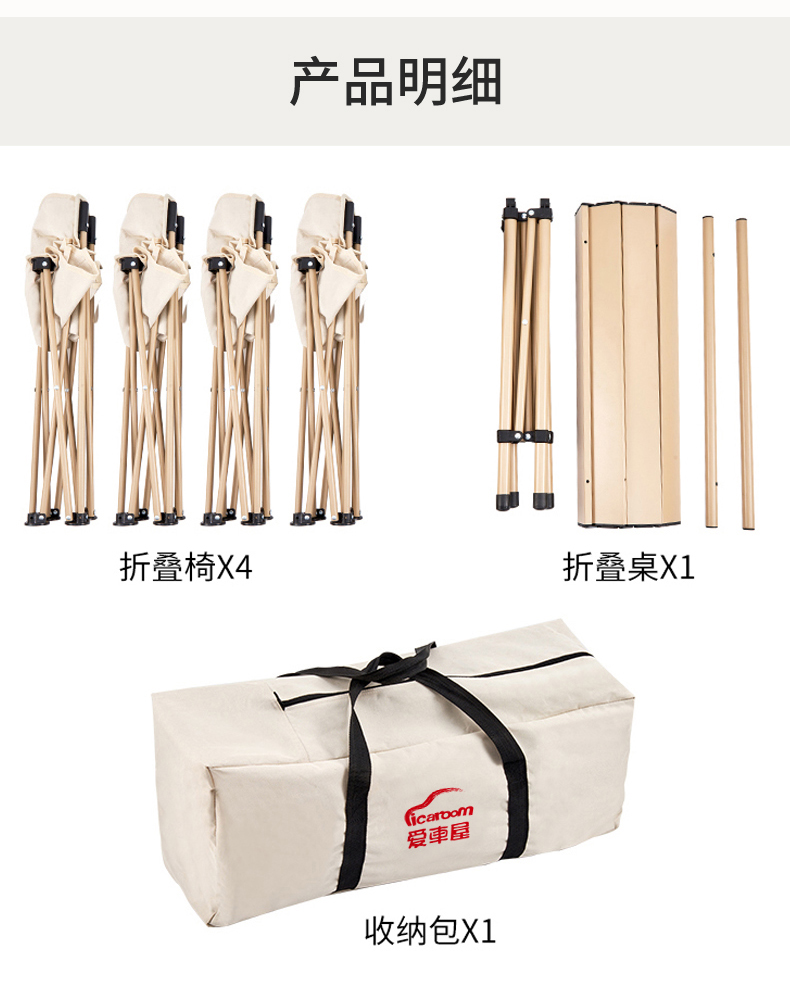 商品名称:ICAROOM/爱车屋户外便携折叠桌椅五件套D-2130