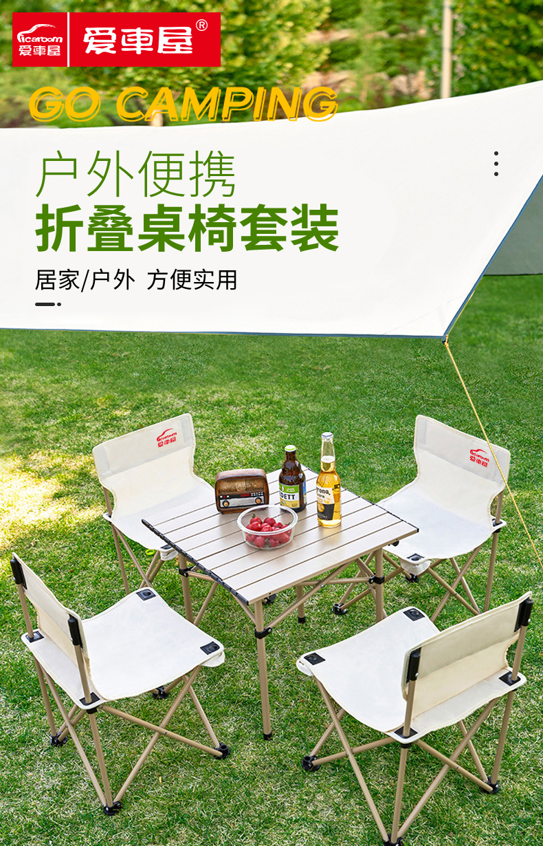 ICAROOM/爱车屋户外便携折叠桌椅五件套D-2130