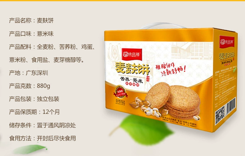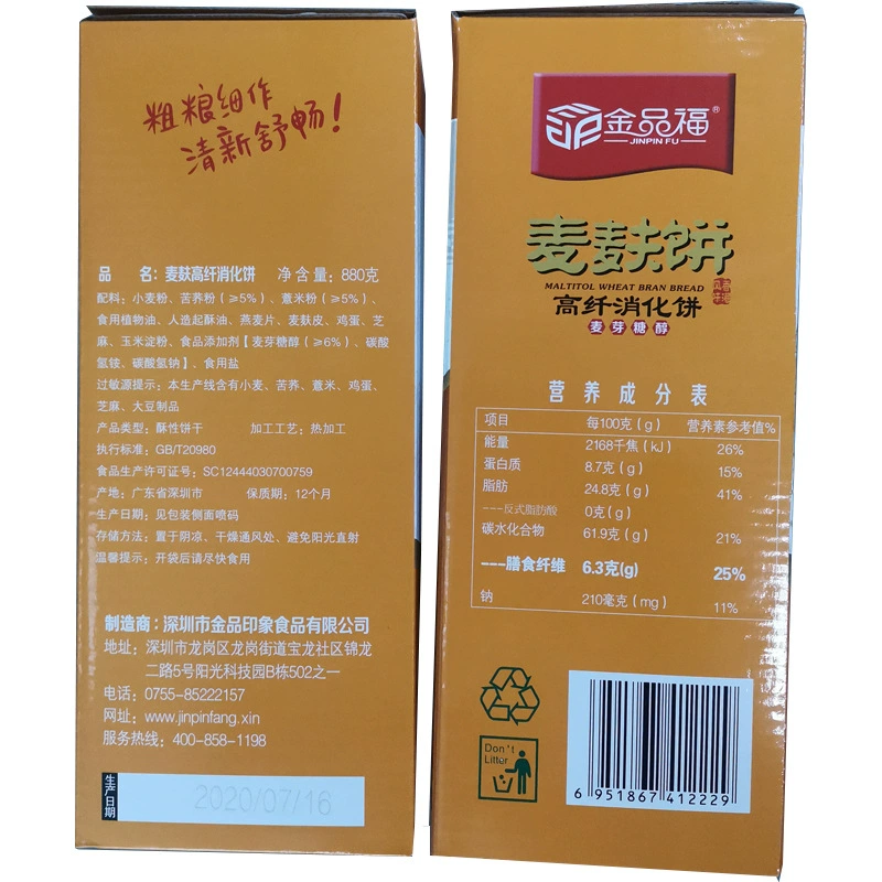 商品名称:金品福无蔗糖麦麸高纤酥饼880g