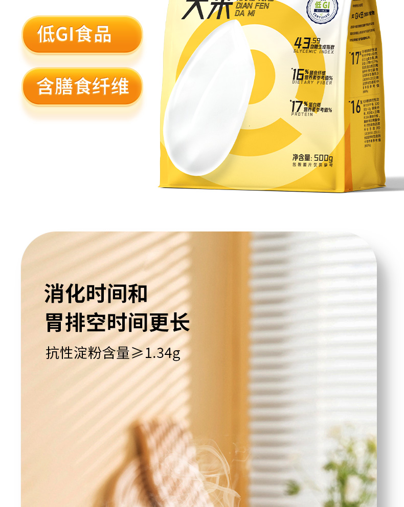 商品名称:神探伍伍低GI抗性大米500g*2袋