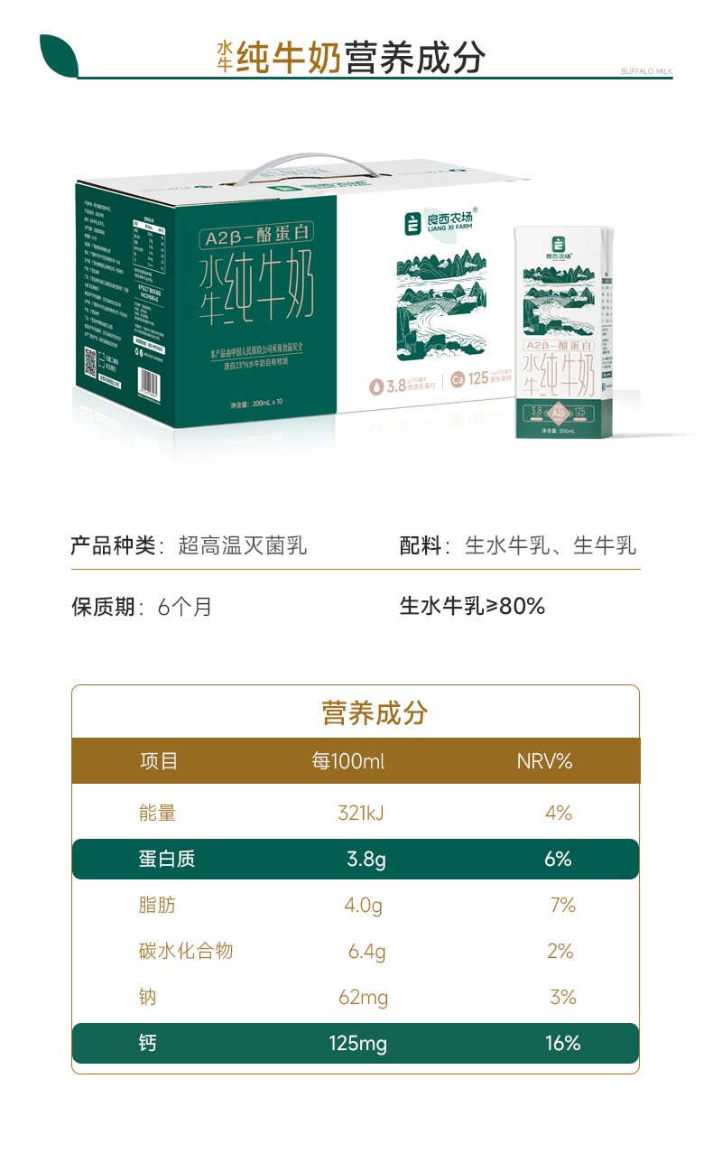 商品名称:良西农场A2β-酪蛋白水牛纯牛奶