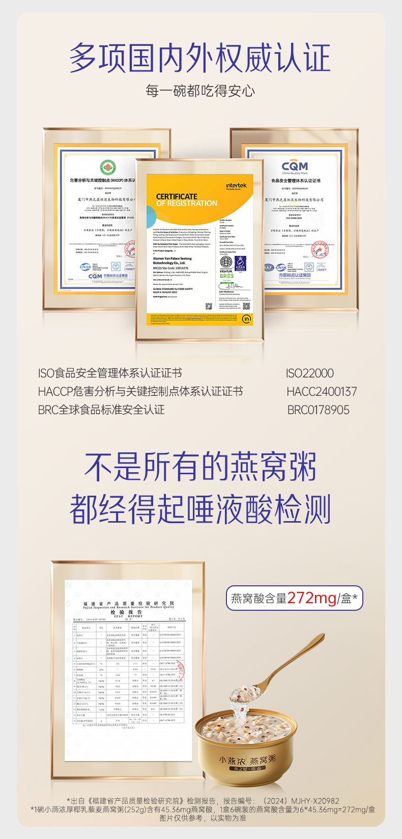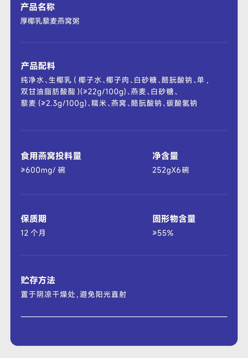 商品名称:YANPALACE/燕之屋小燕浓燕窝厚椰乳藜麦燕窝粥礼盒252g*6碗