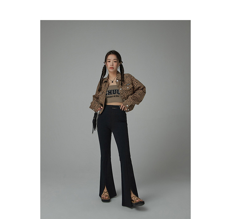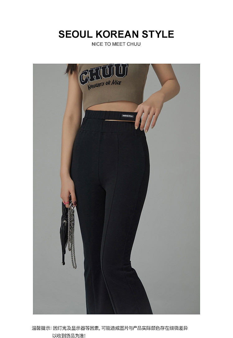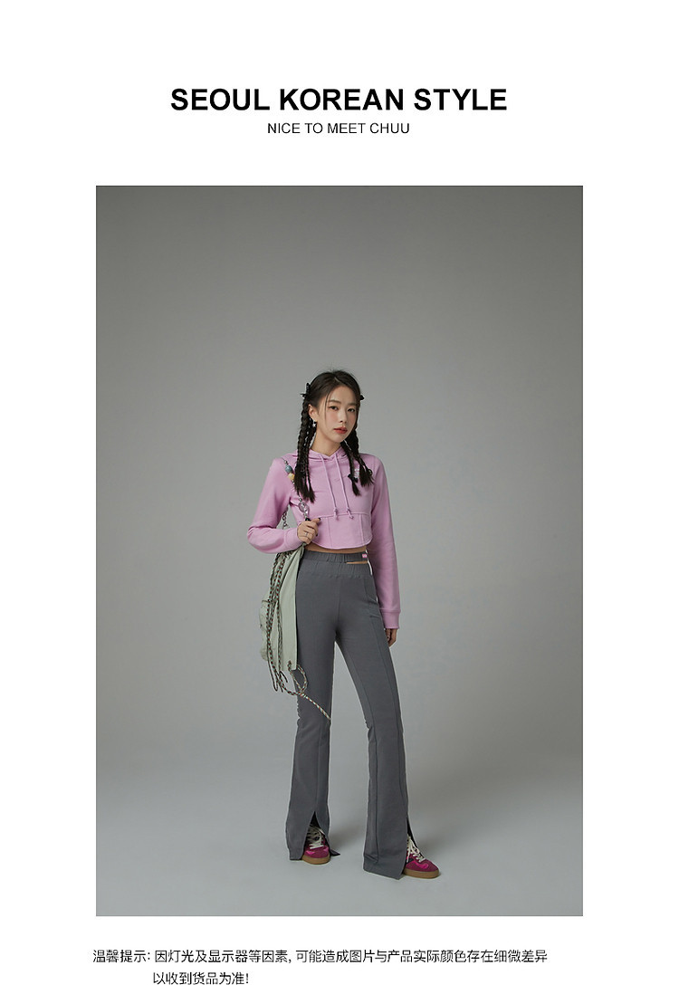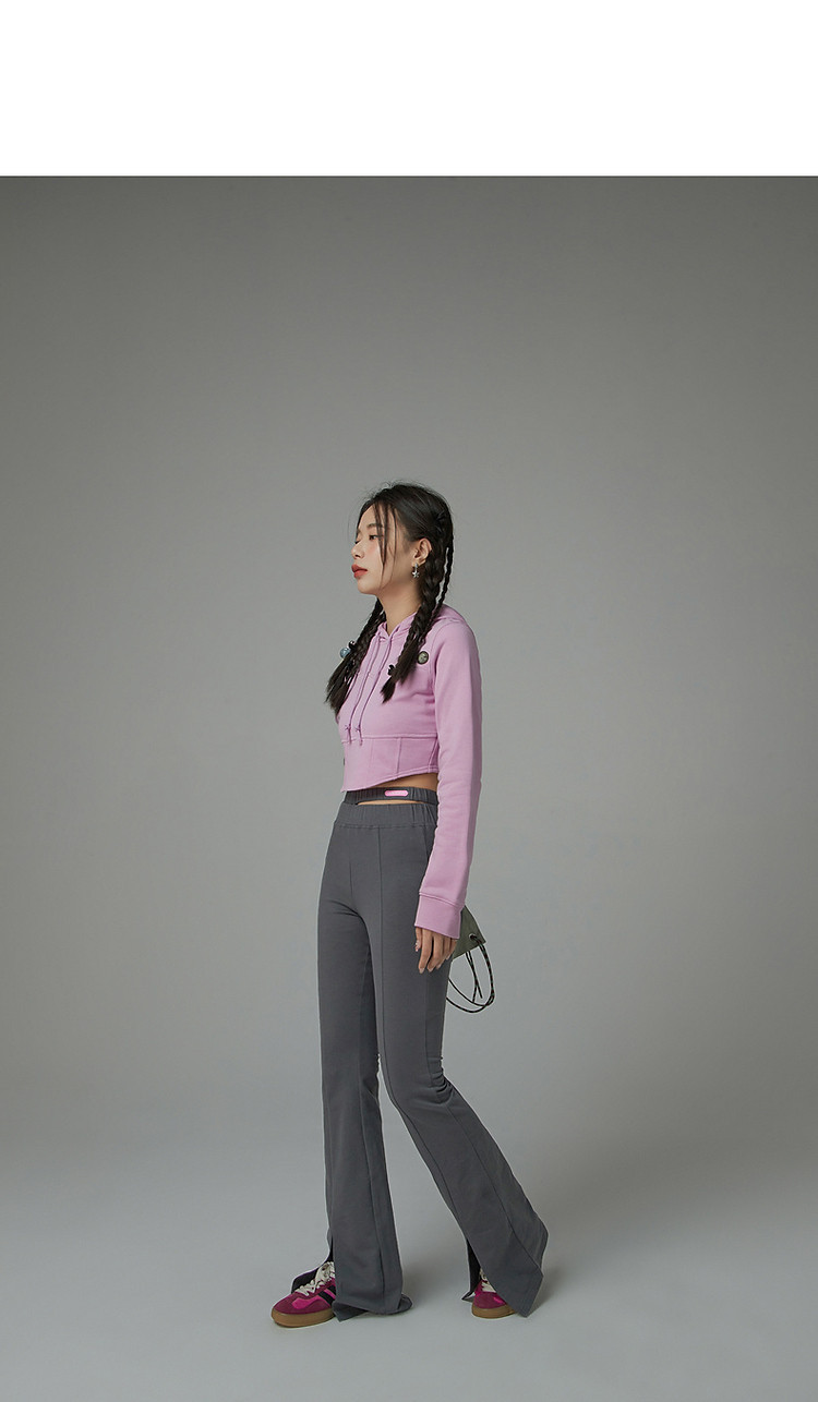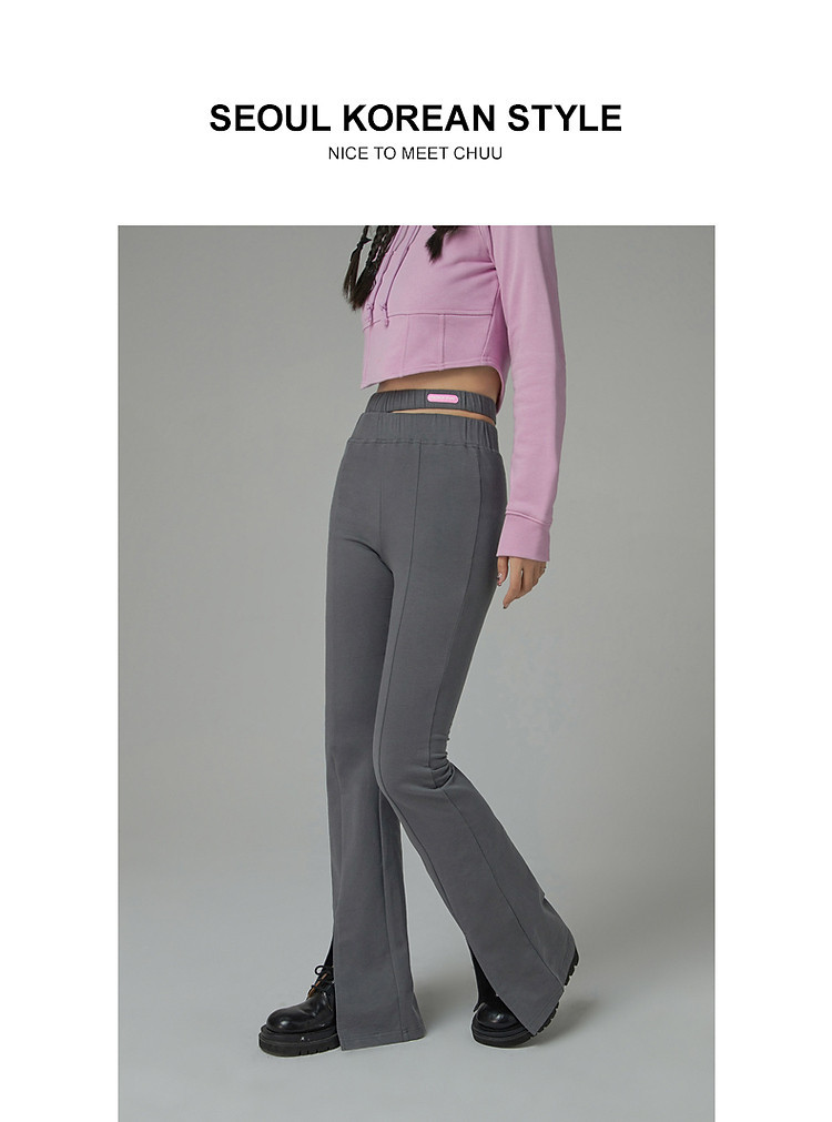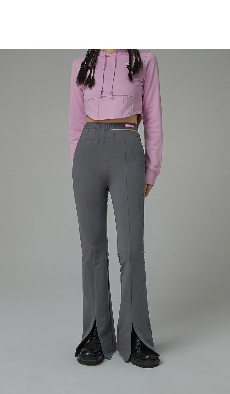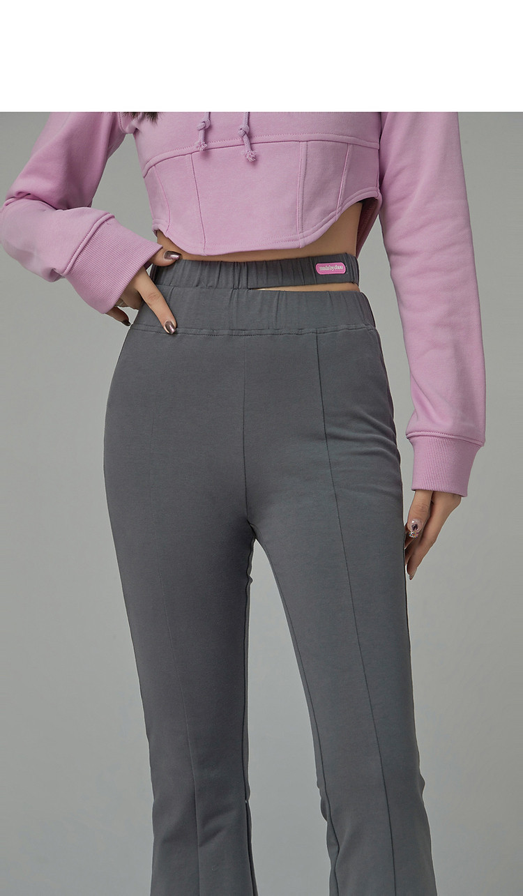 商品名称:露腰开衩休闲裤女2025春高腰垂感微喇裤运动长裤 696659