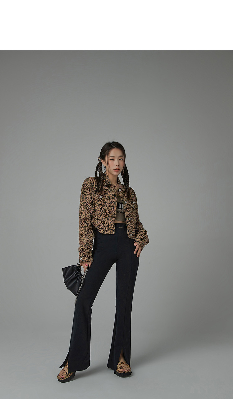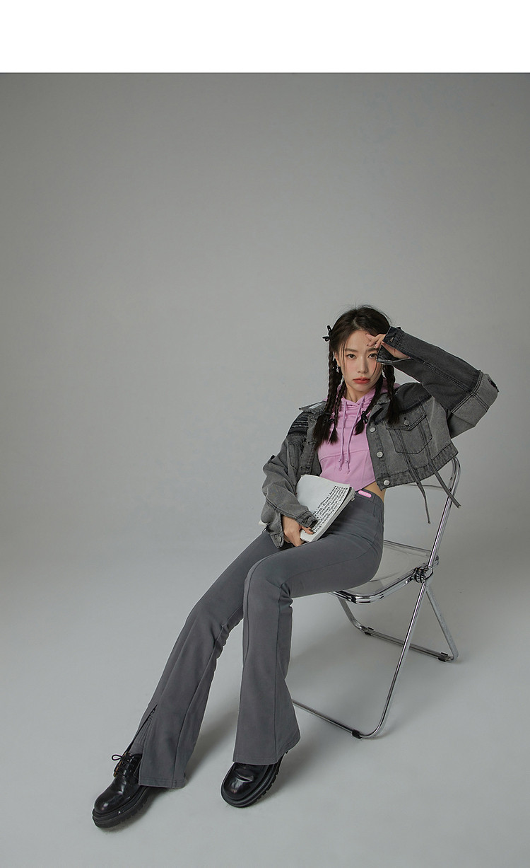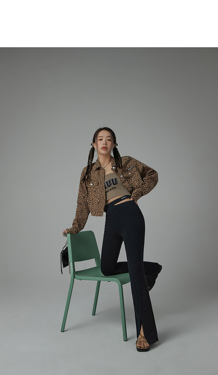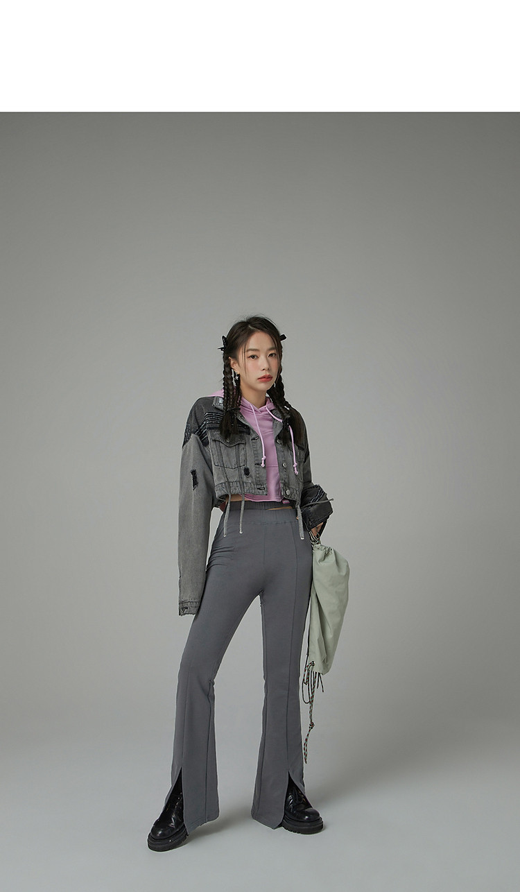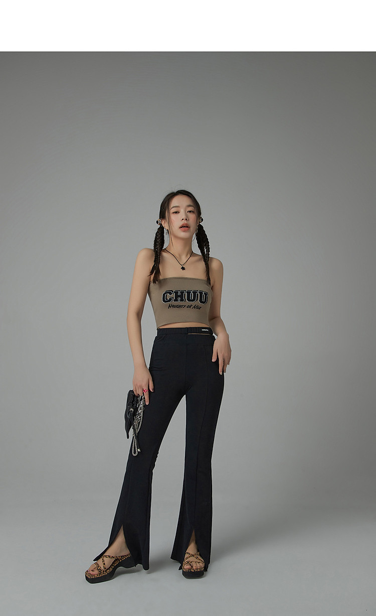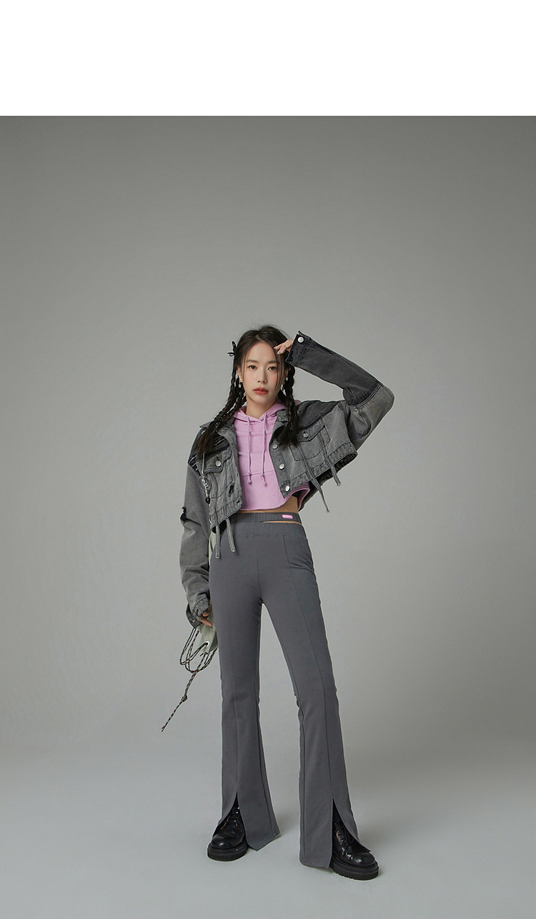 商品名称:露腰开衩休闲裤女2025春高腰垂感微喇裤运动长裤 696659