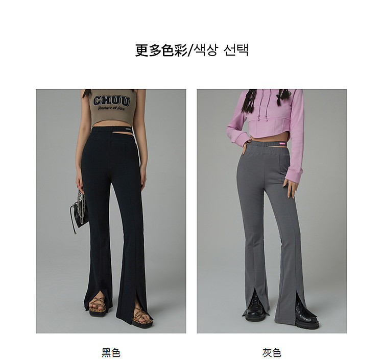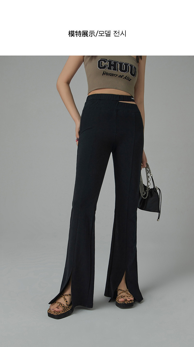 露腰开衩休闲裤女2025春高腰垂感微喇裤运动长裤 696659