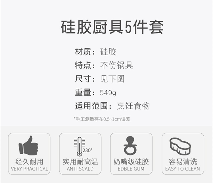 商品名称:寒铁硅胶厨具五件套IRON-0204