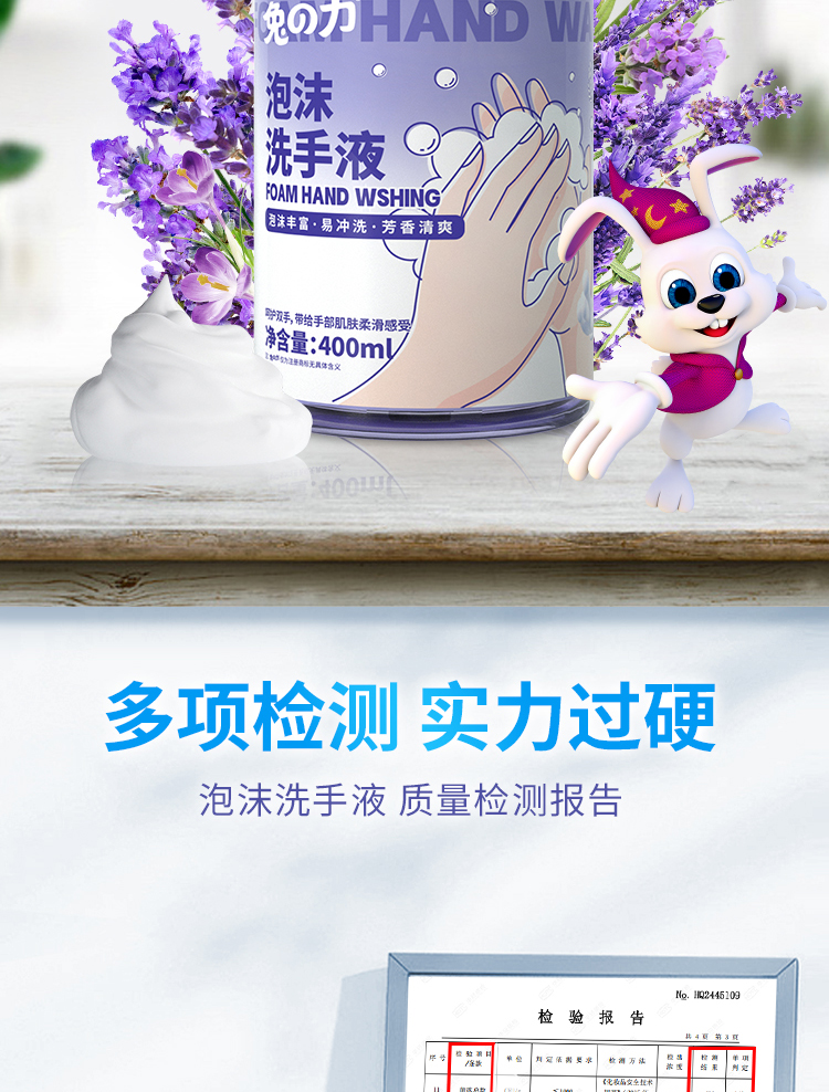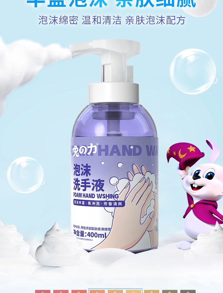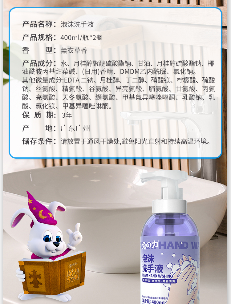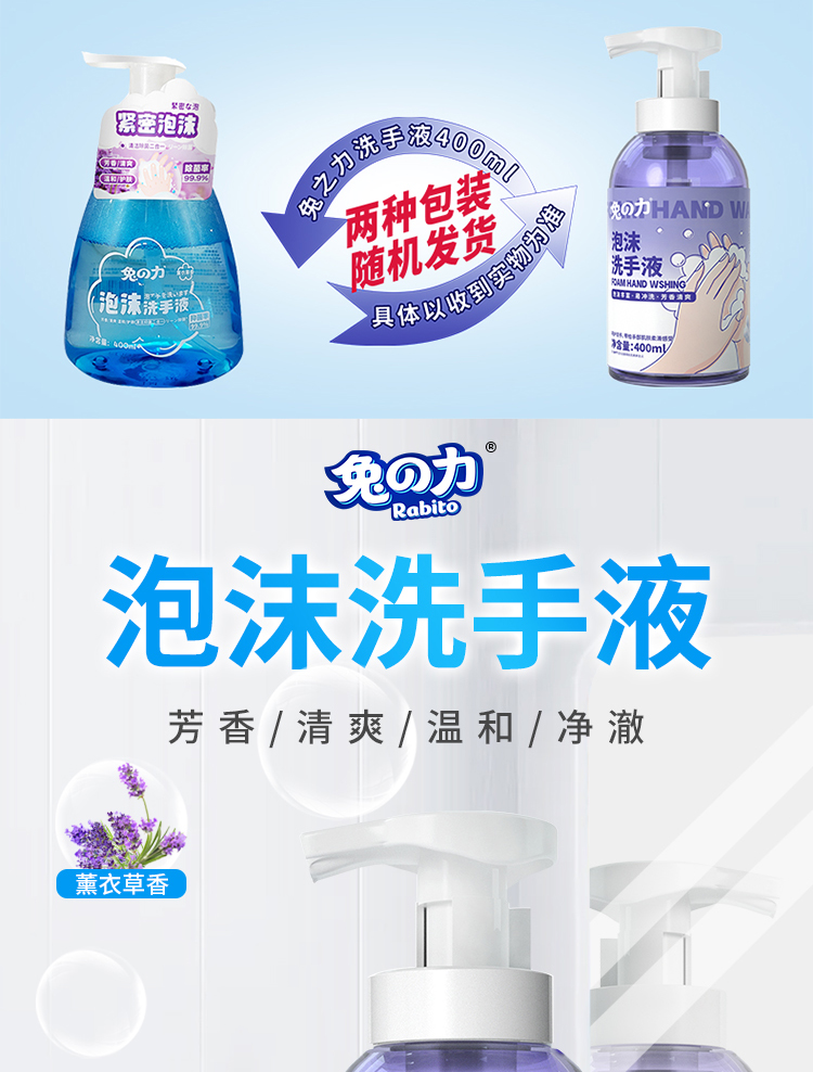商品名称:兔之力抑菌泡泡洗手液400ml*2瓶