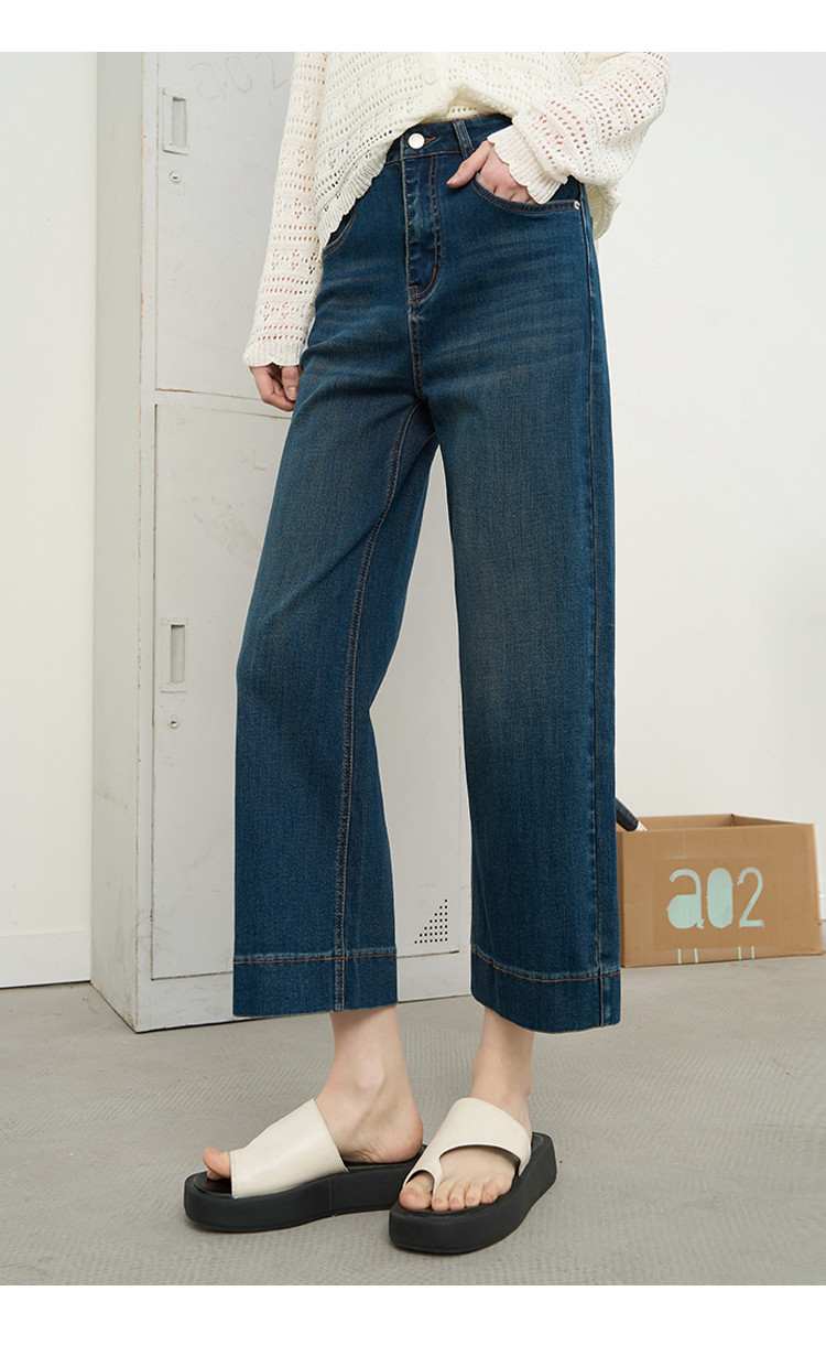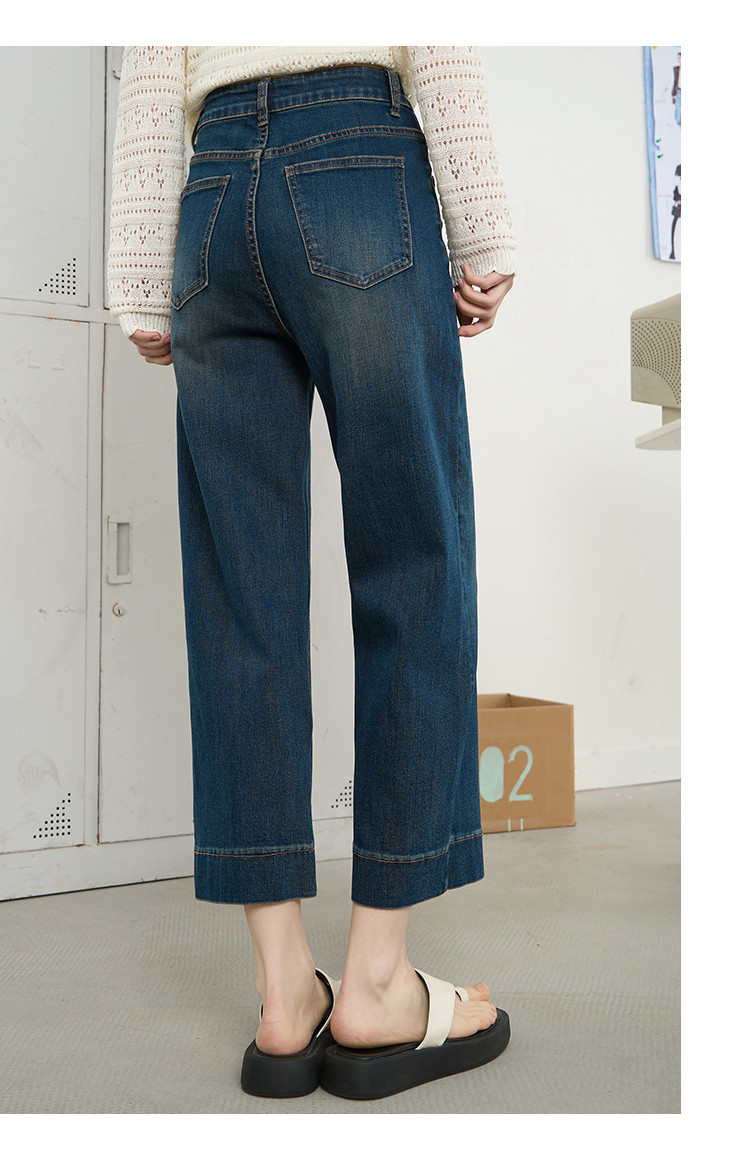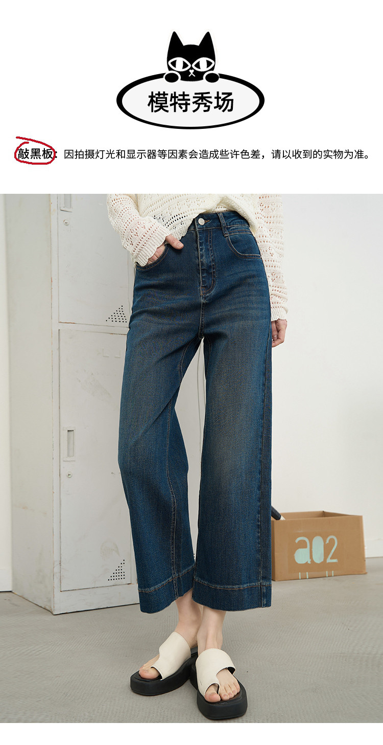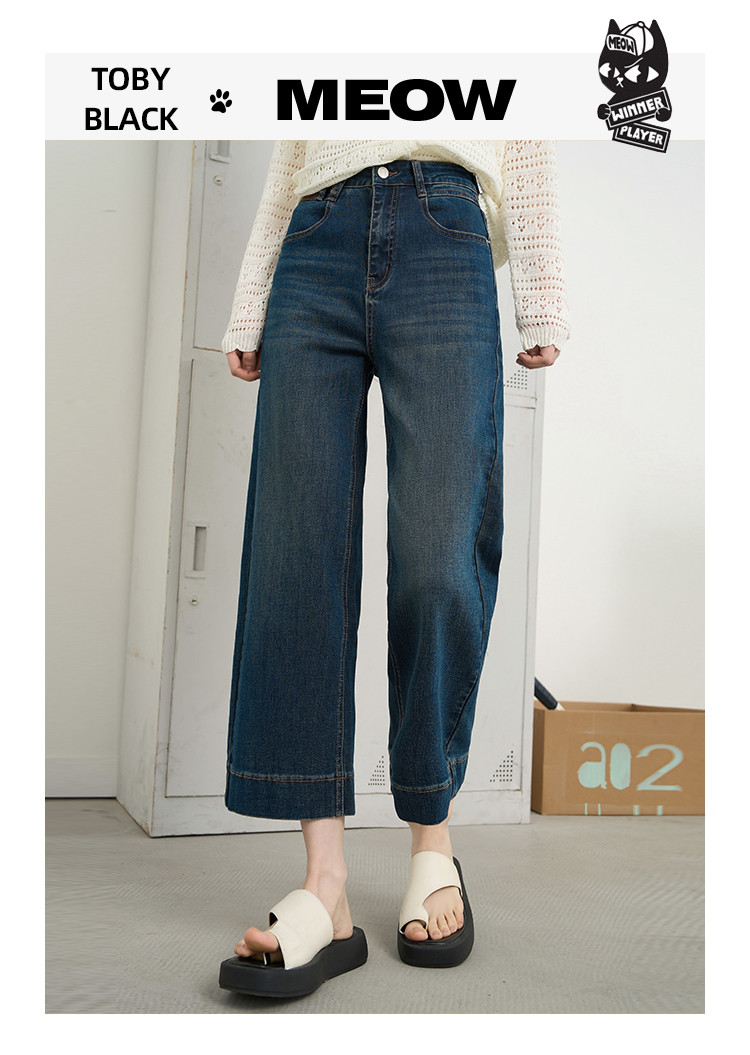 商品名称:时尚高腰休闲阔腿九分直筒裤2025夏季宽松百搭女式牛仔裤 575645