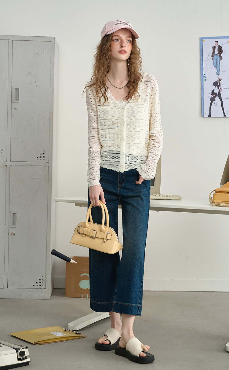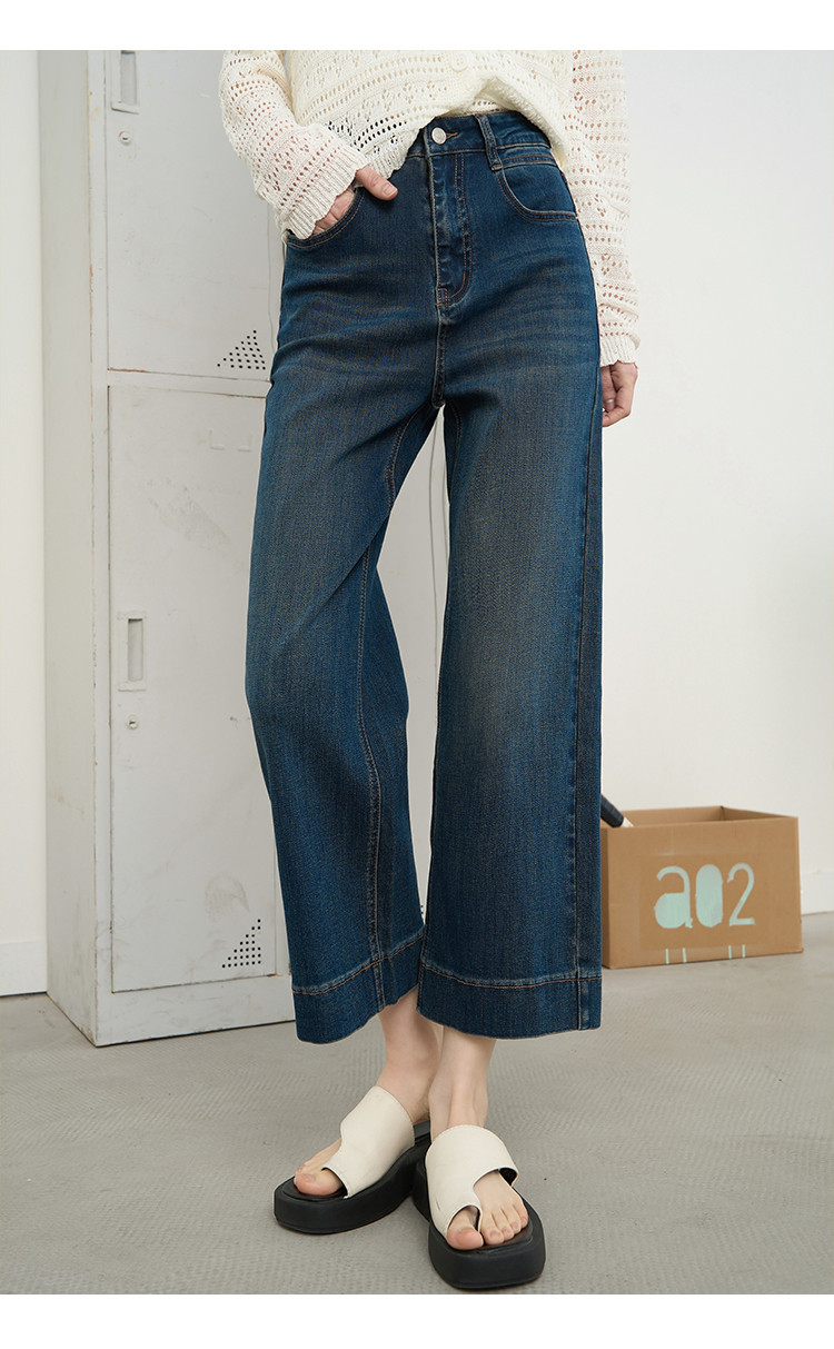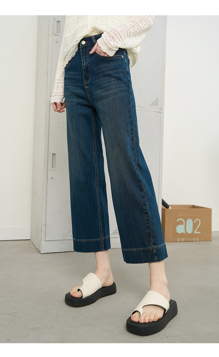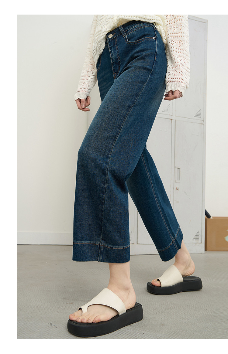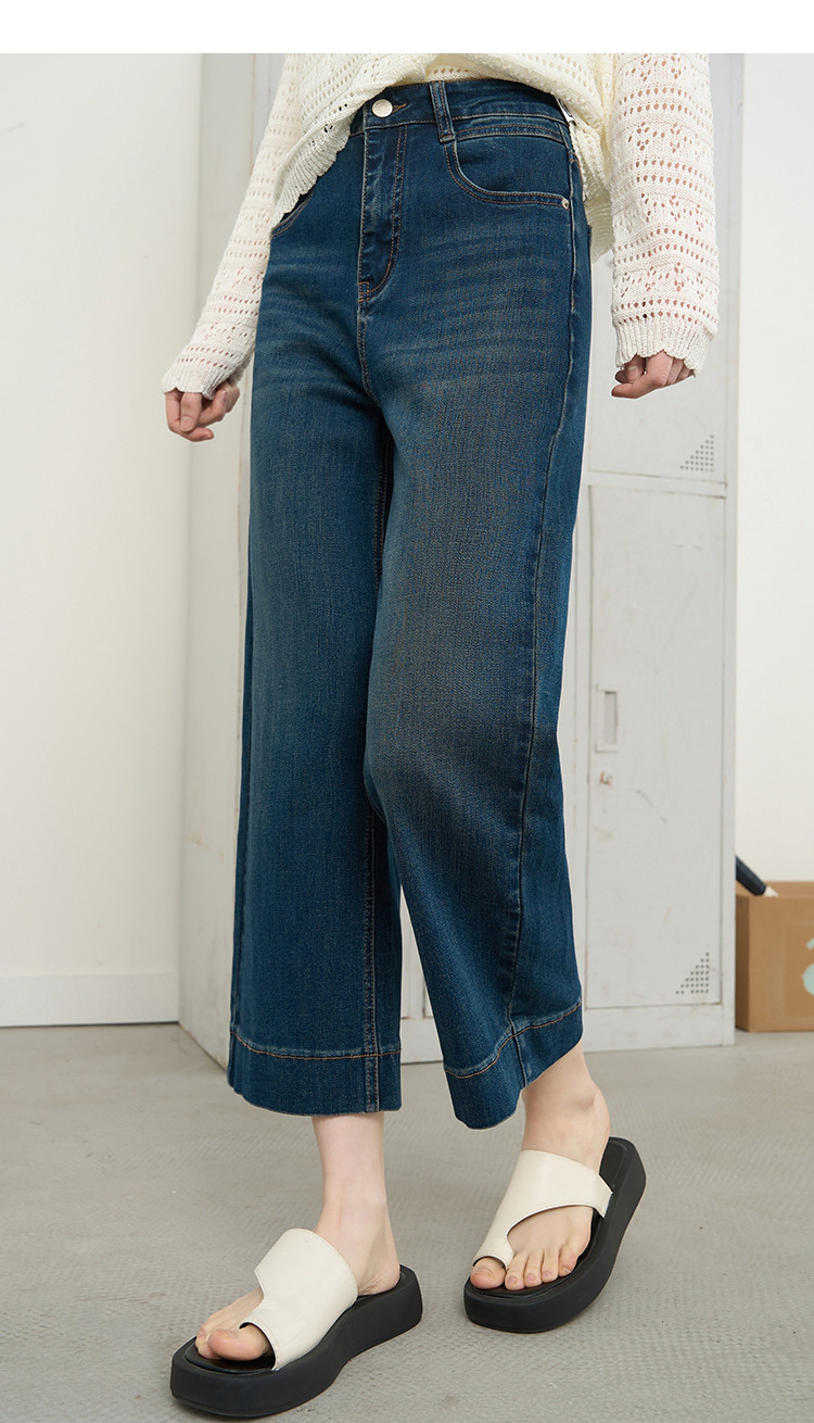 商品名称:时尚高腰休闲阔腿九分直筒裤2025夏季宽松百搭女式牛仔裤 575645