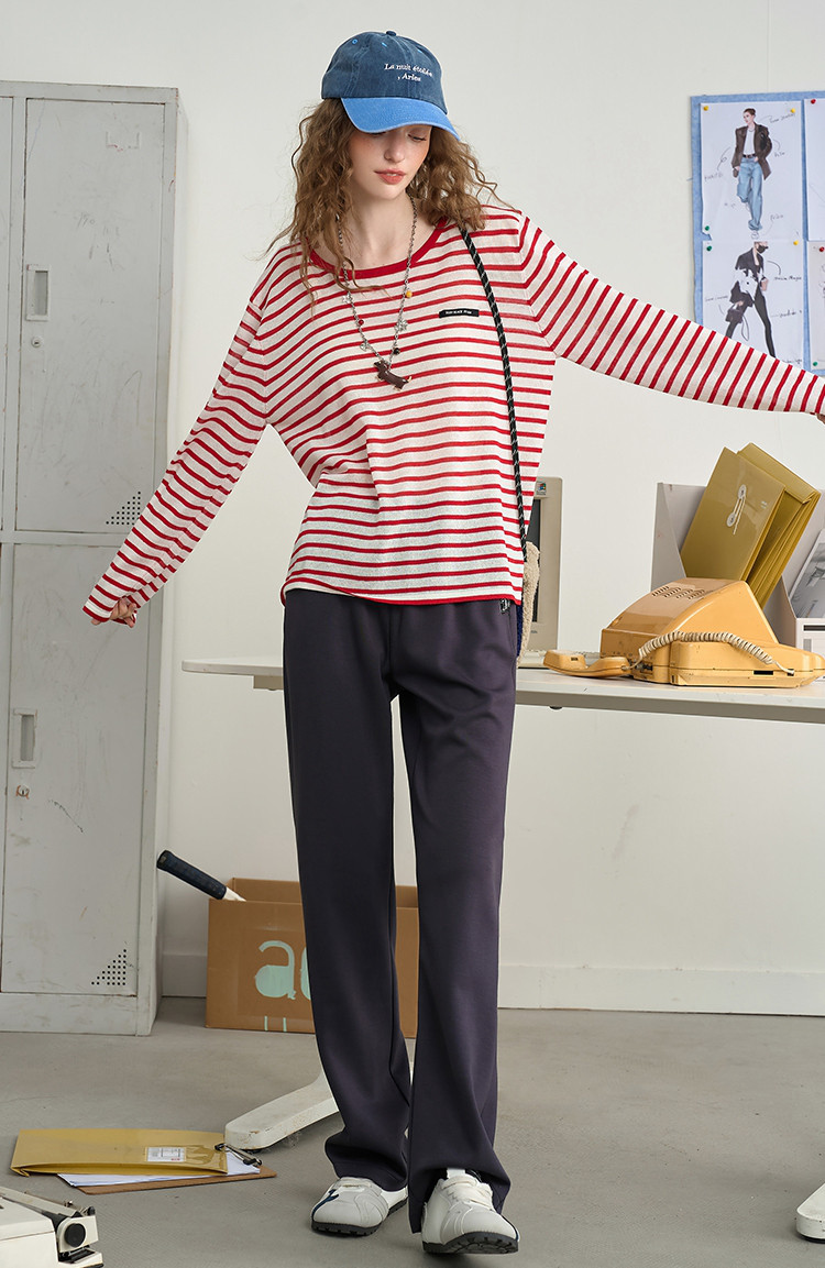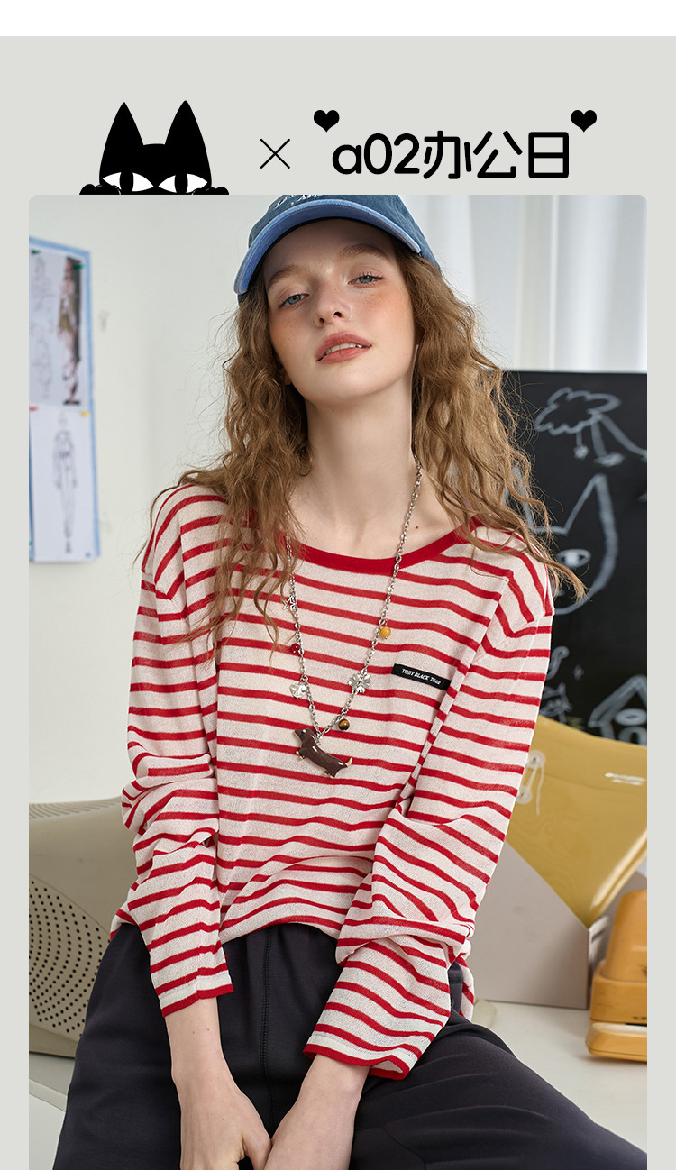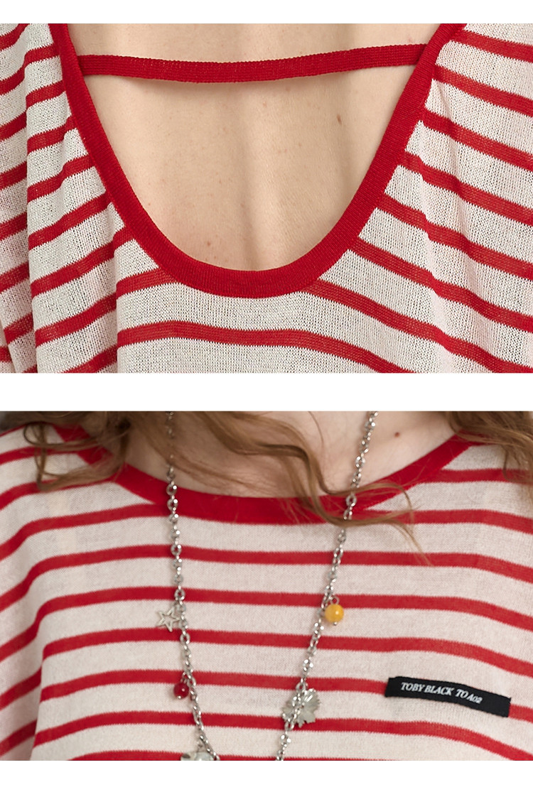 商品名称:镂空设计感减龄撞色圆领上衣2025夏季百搭休闲女式针织衫 467549