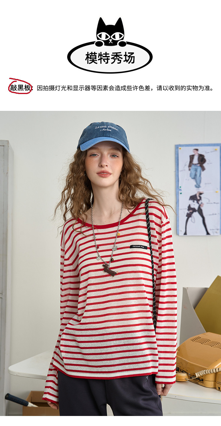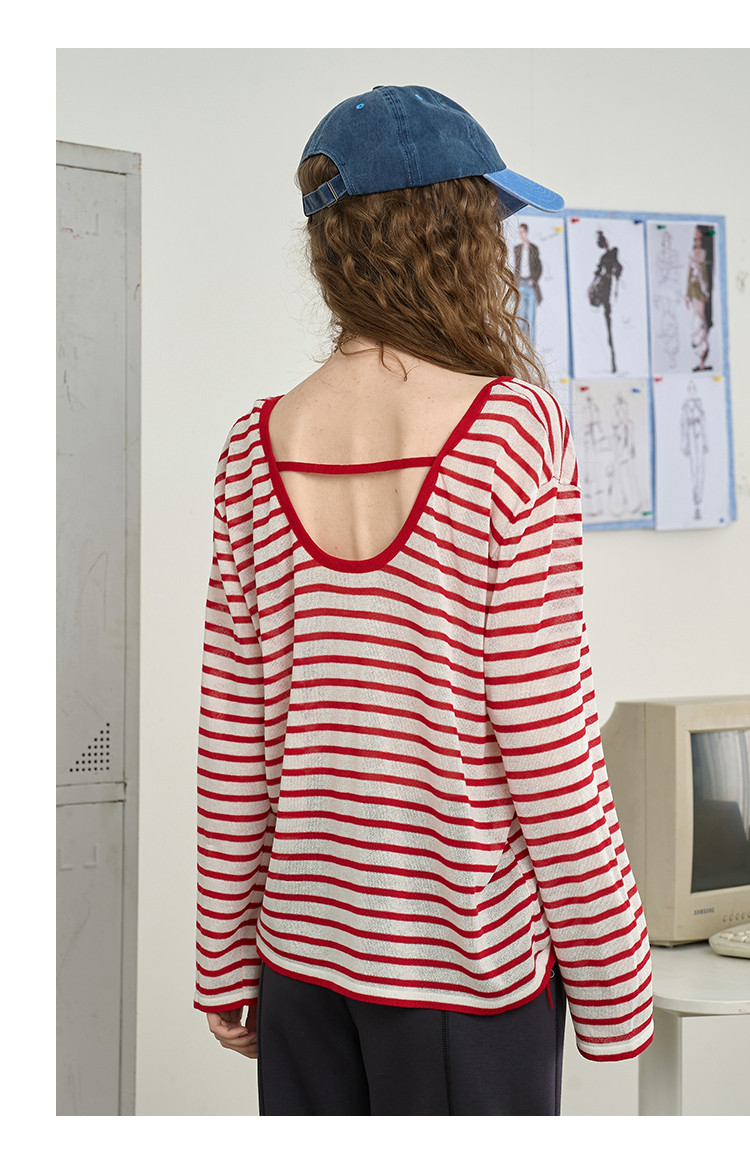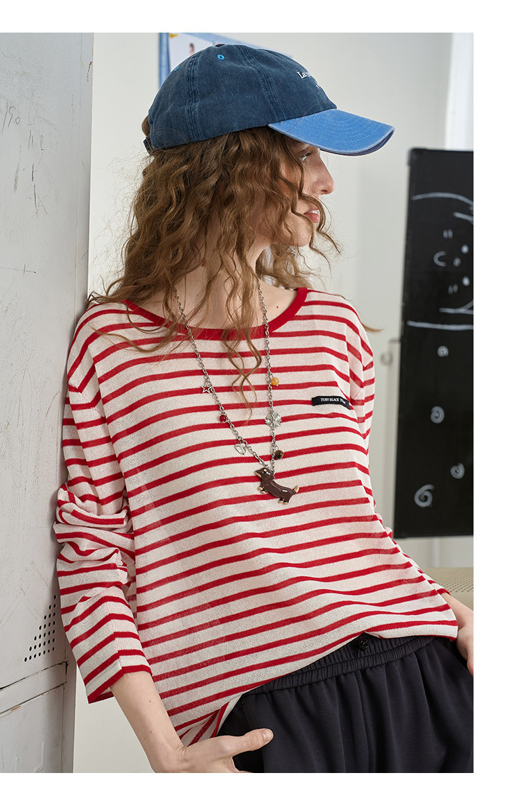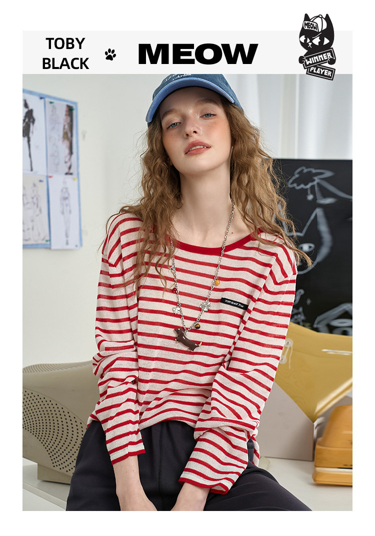 镂空设计感减龄撞色圆领上衣2025夏季百搭休闲女式针织衫 467549