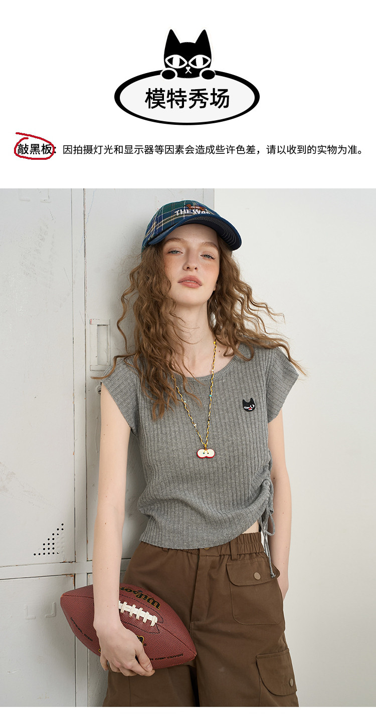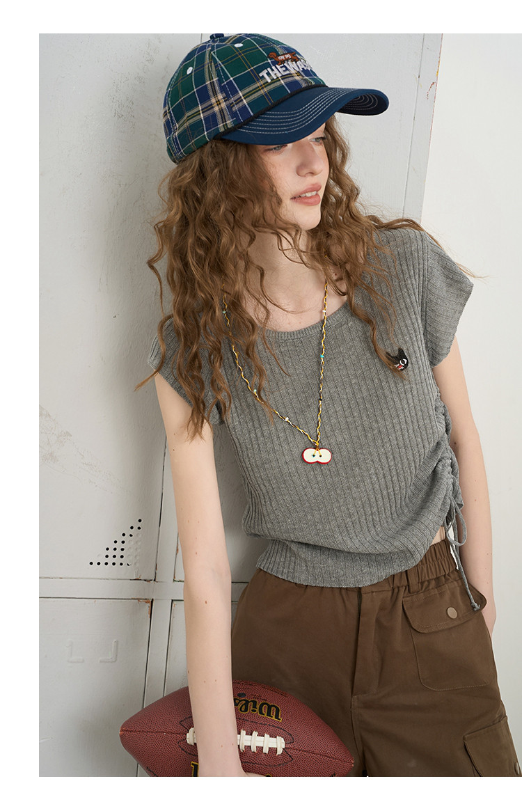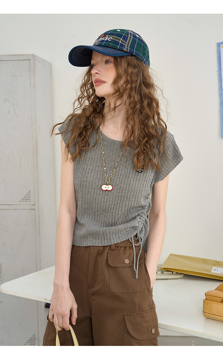 商品名称:法式气质抽绳高级感短袖T恤2025夏季百搭休闲女式针织衫 559261