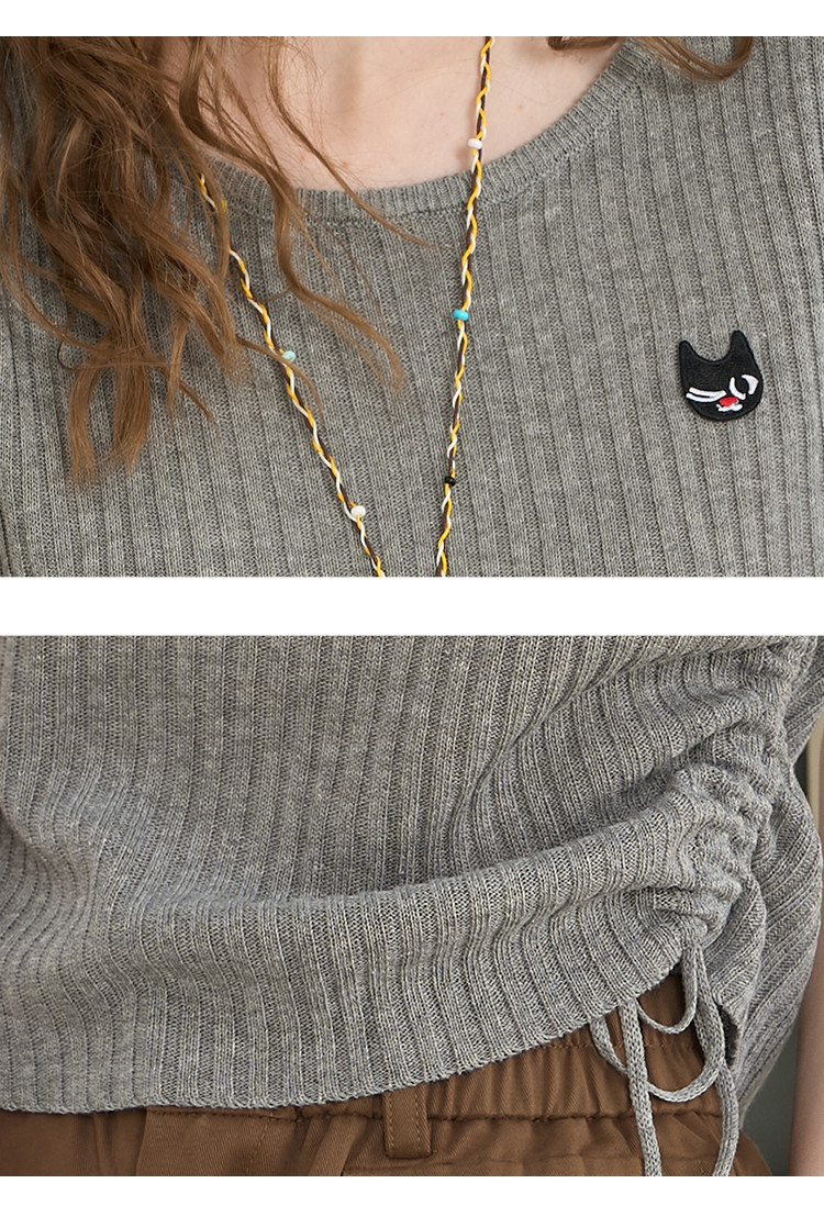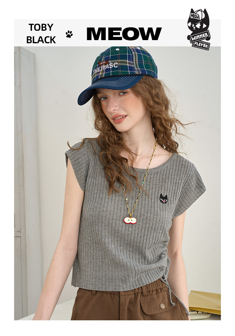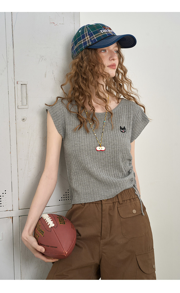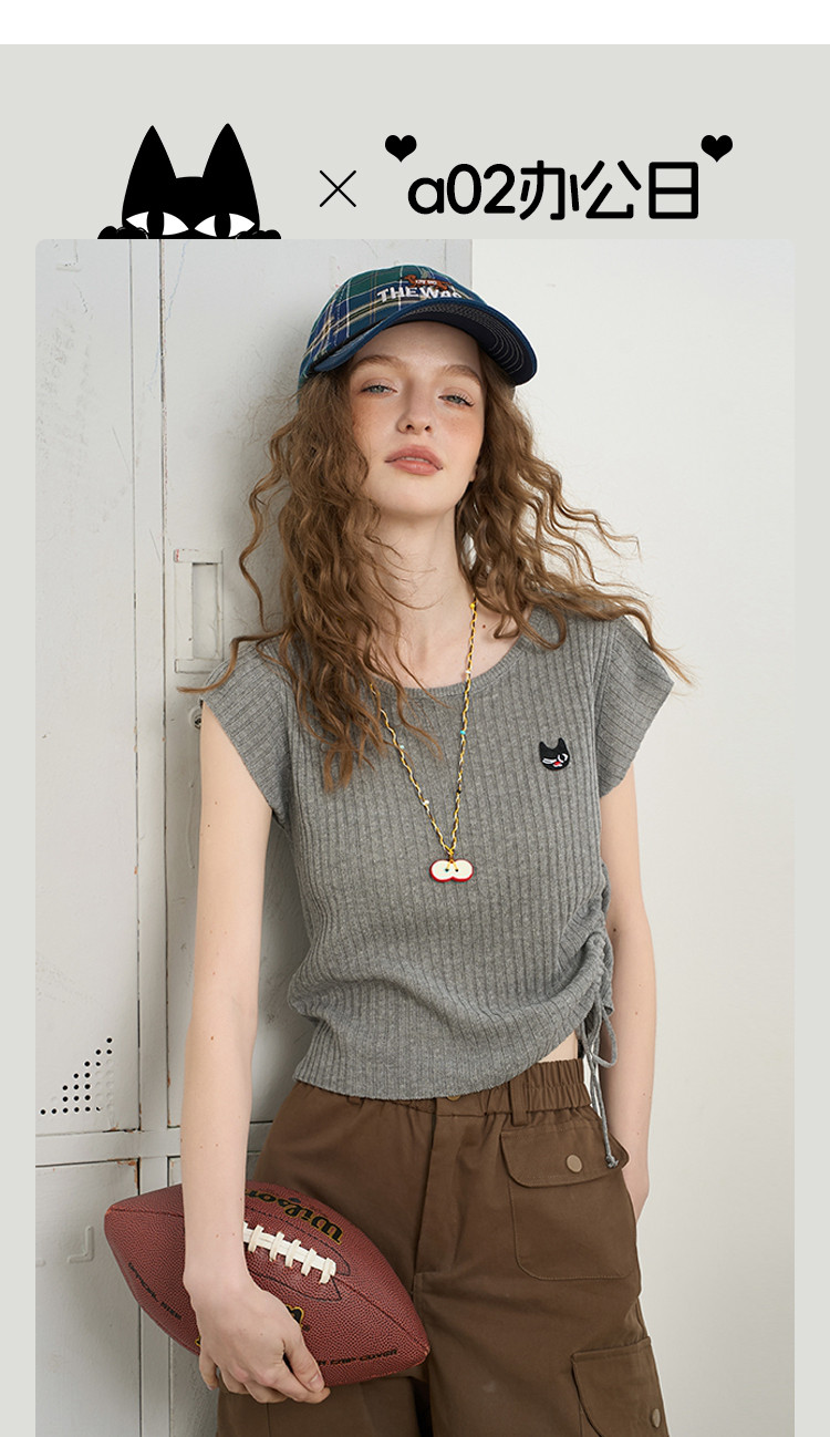 商品名称:法式气质抽绳高级感短袖T恤2025夏季百搭休闲女式针织衫 559261