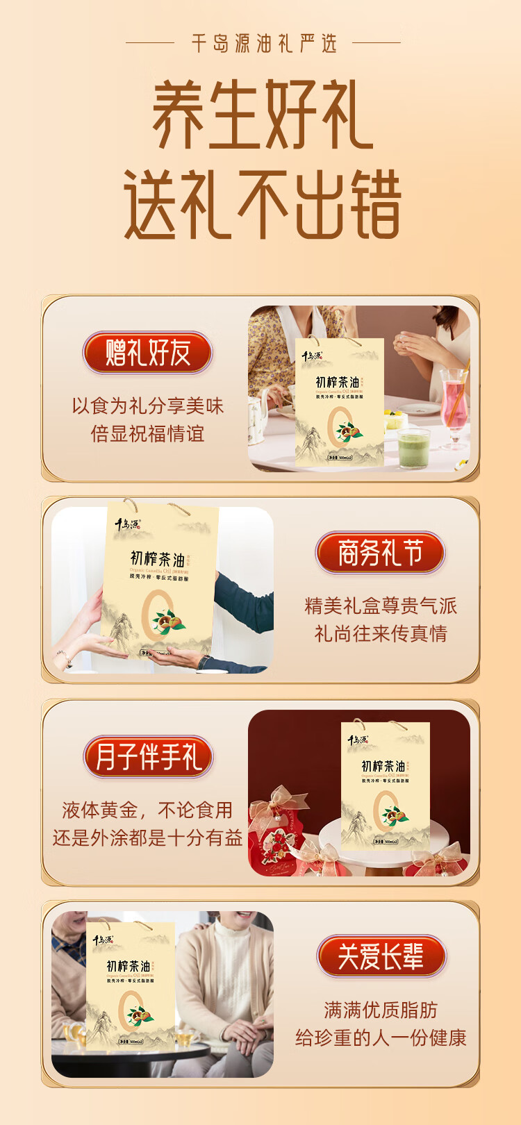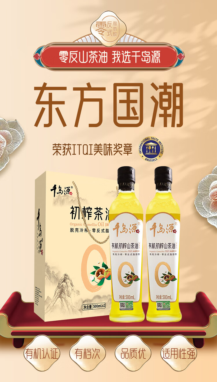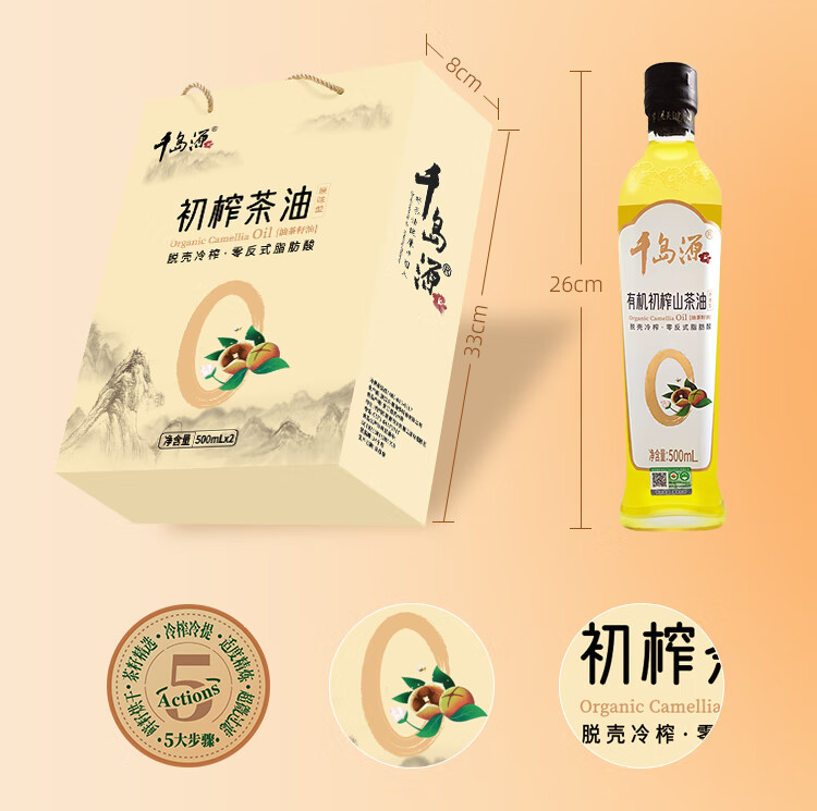 商品名称:千岛源初榨有机山茶油精装礼盒500ml*2瓶