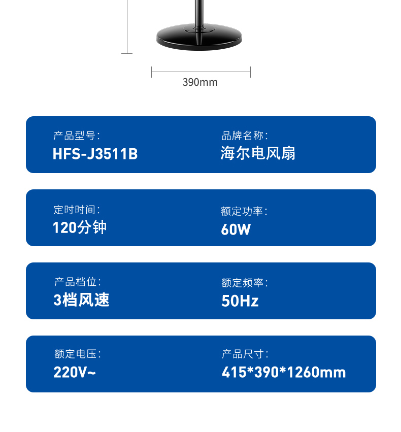商品名称:Haier/海尔落地扇HFS-J3511B