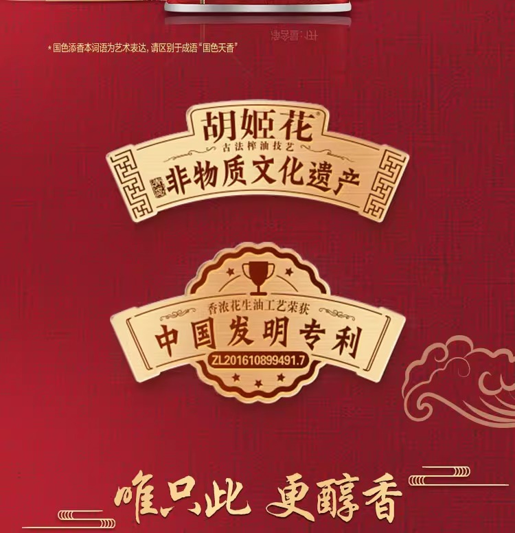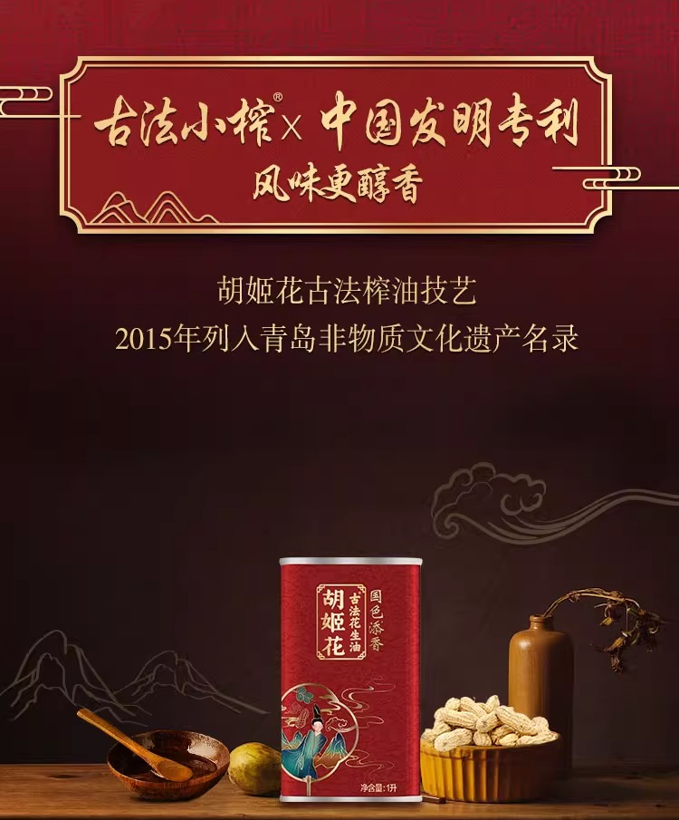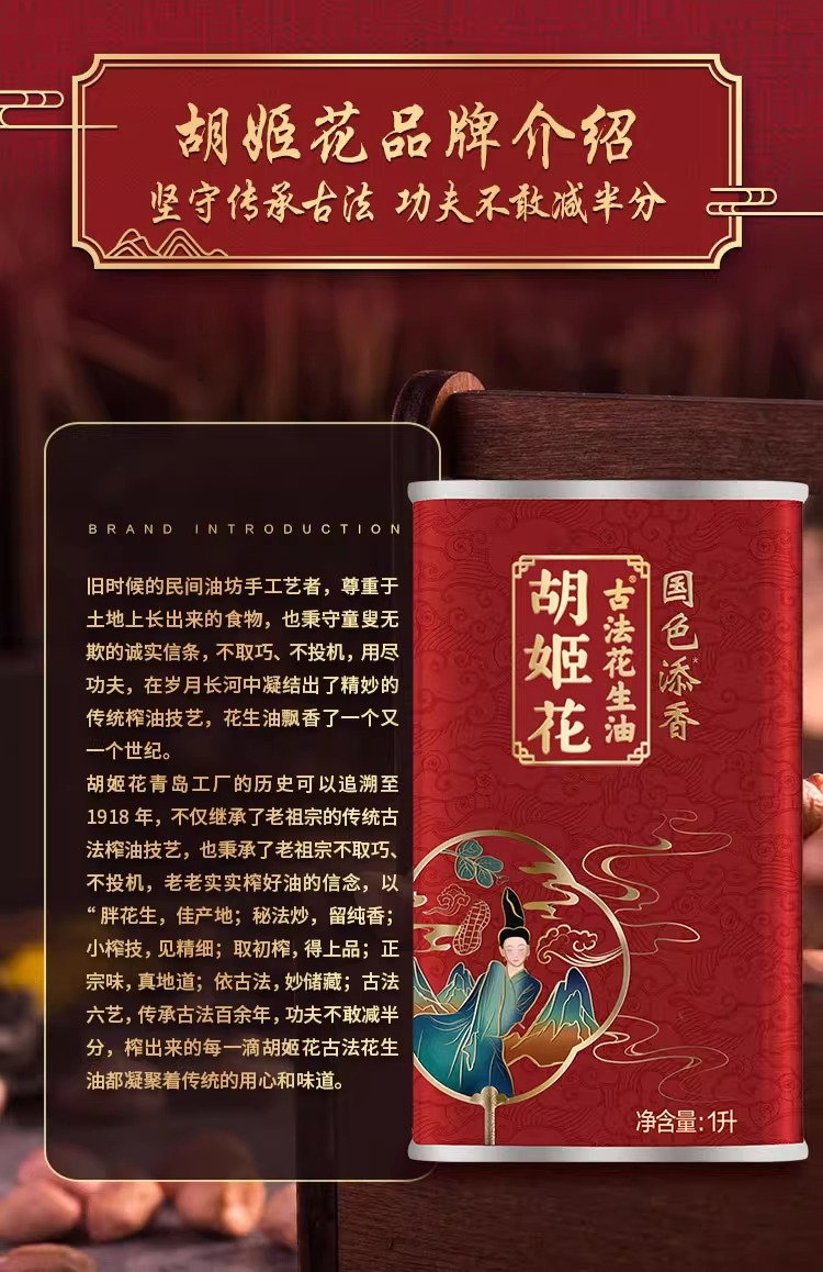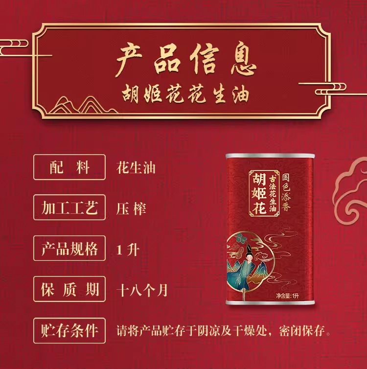 商品名称:胡姬花国色添香古法花生油铁听装1L