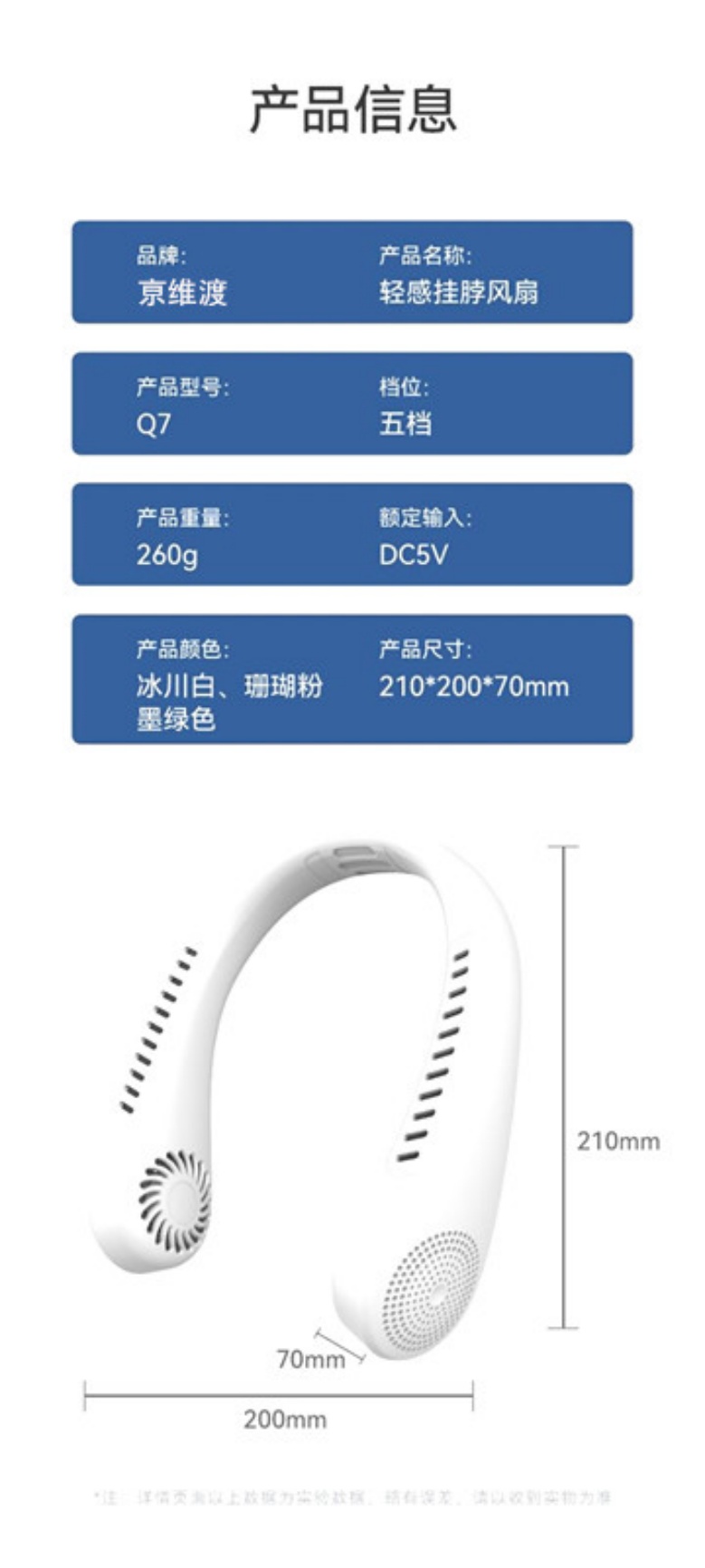 商品名称:京维渡无叶挂脖风扇Q7