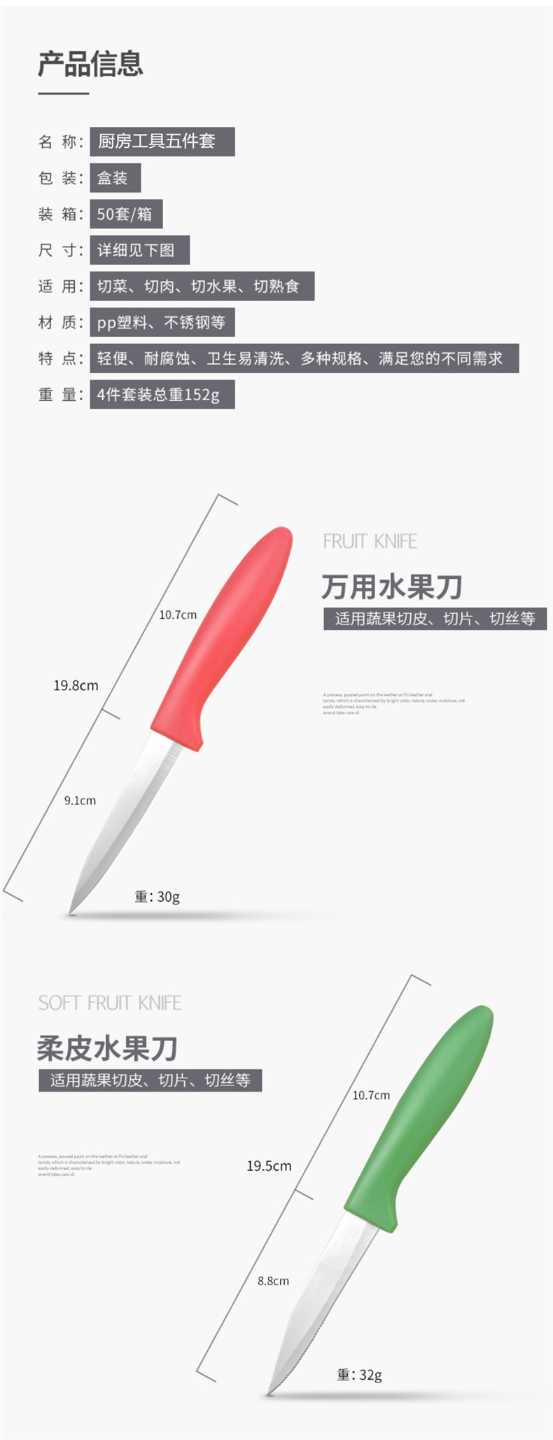 商品名称:寒铁水果伴侣厨房工具五件套IRON-0010