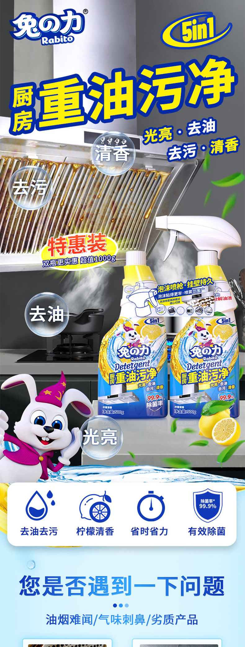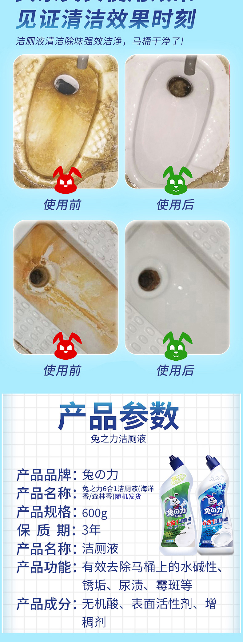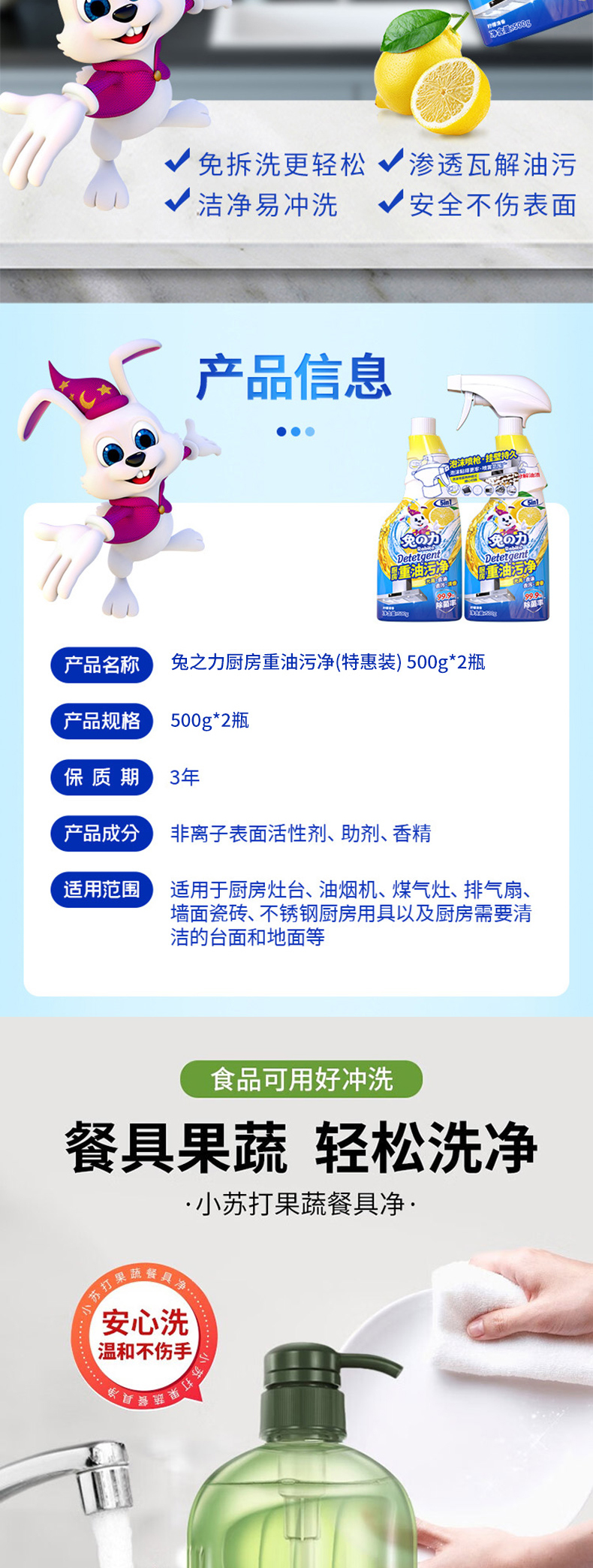 商品名称:兔之力家庭厨卫清洁3件套2600g