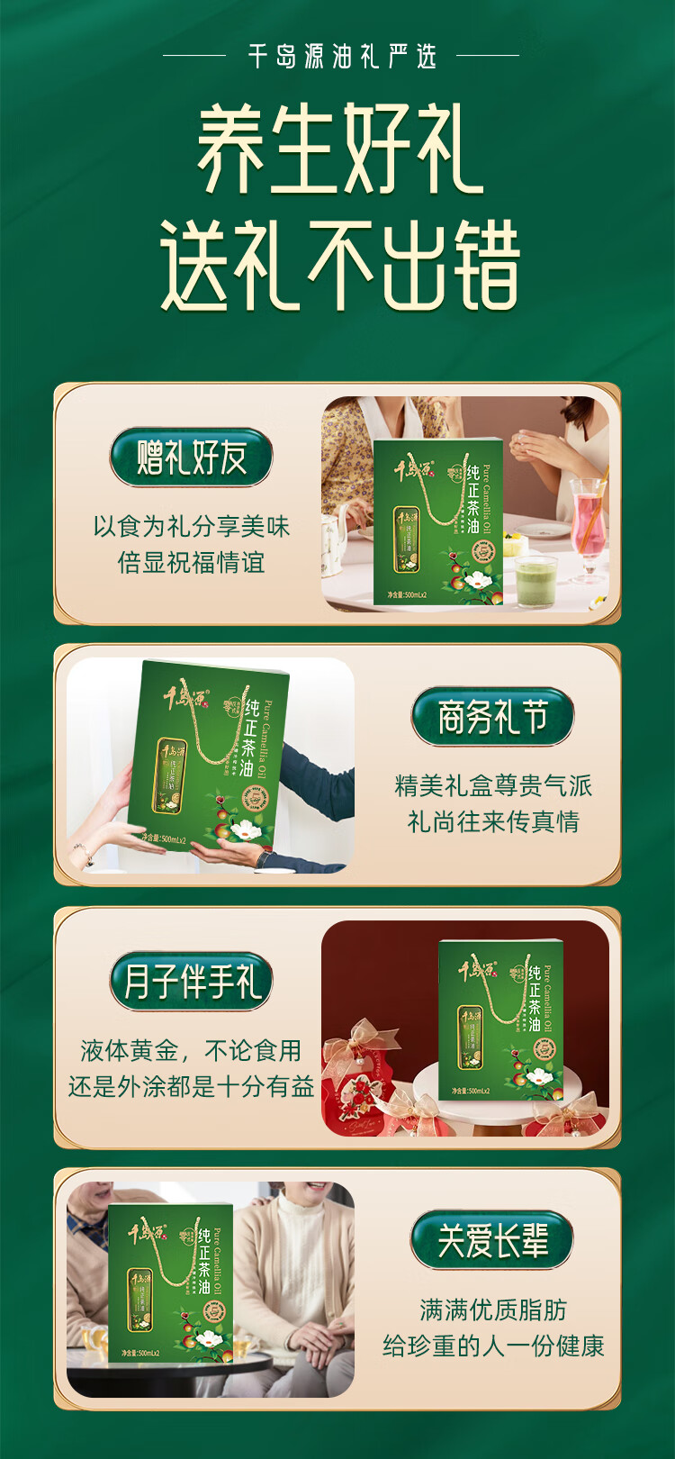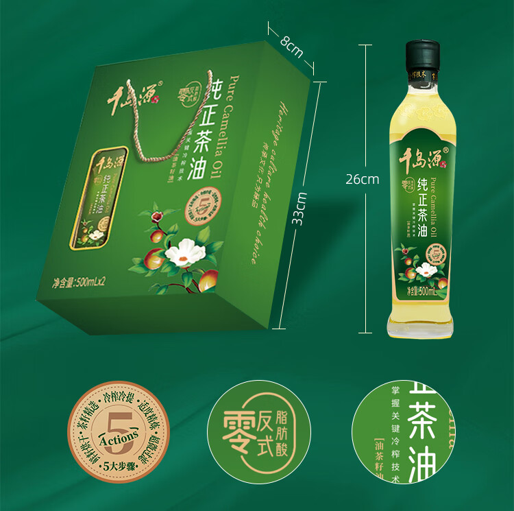 商品名称:千岛源纯正茶油礼盒装500ml*2瓶