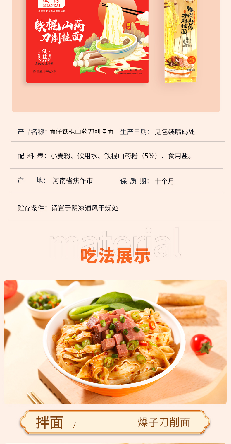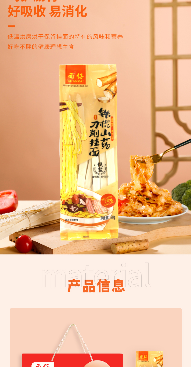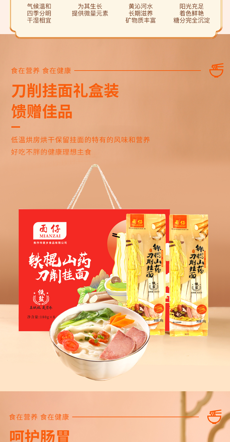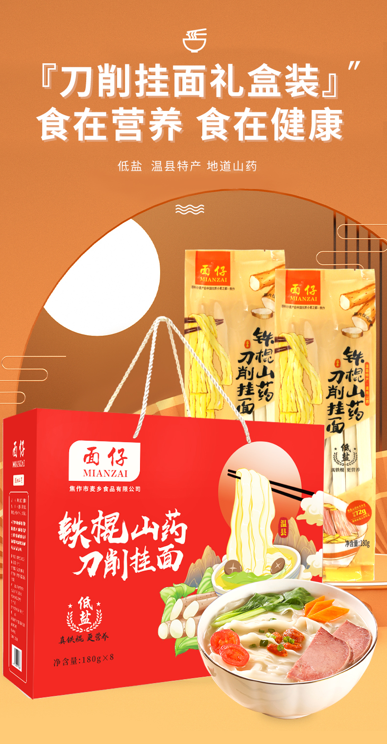 商品名称:麦乡面仔铁棍山药刀削挂面礼盒180g*8包