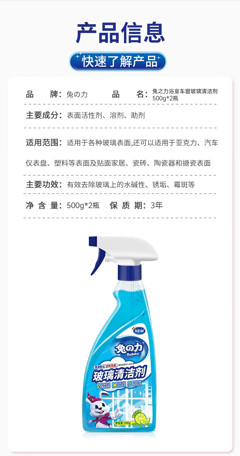 商品名称:兔之力玻璃清洁剂500g*2瓶