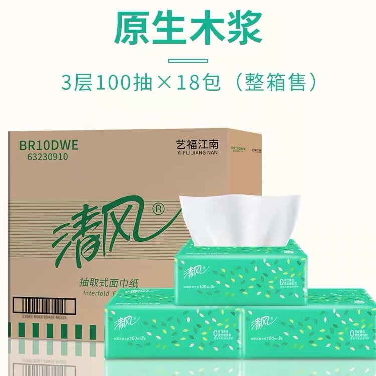 商品名称:Breeze/清风抽取式面巾纸3层100抽*18包