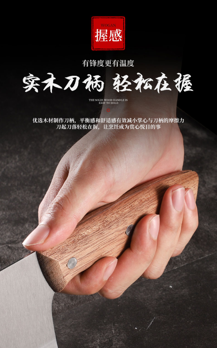 商品名称:寒铁实木柄菜刀IRON-0025
