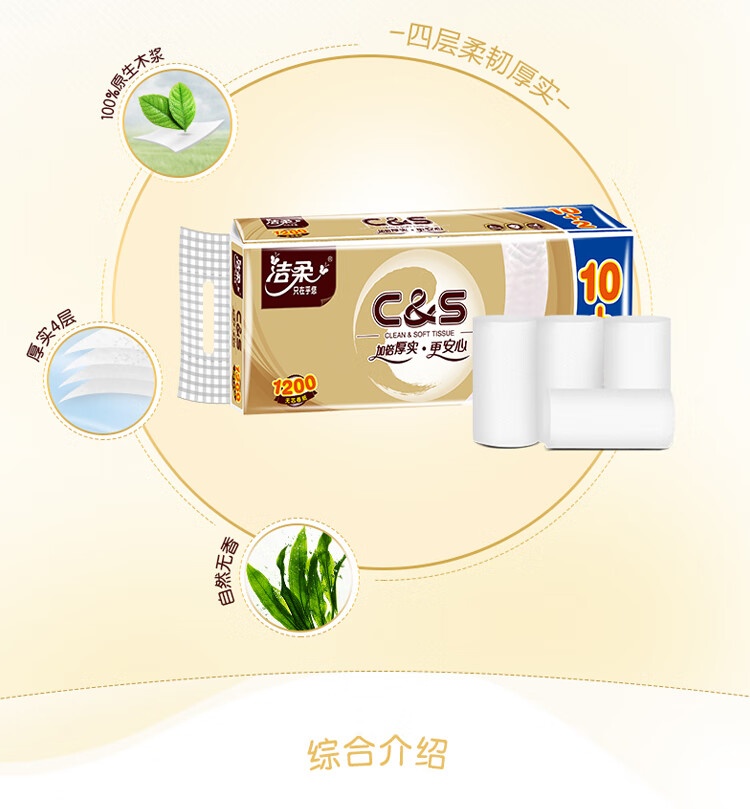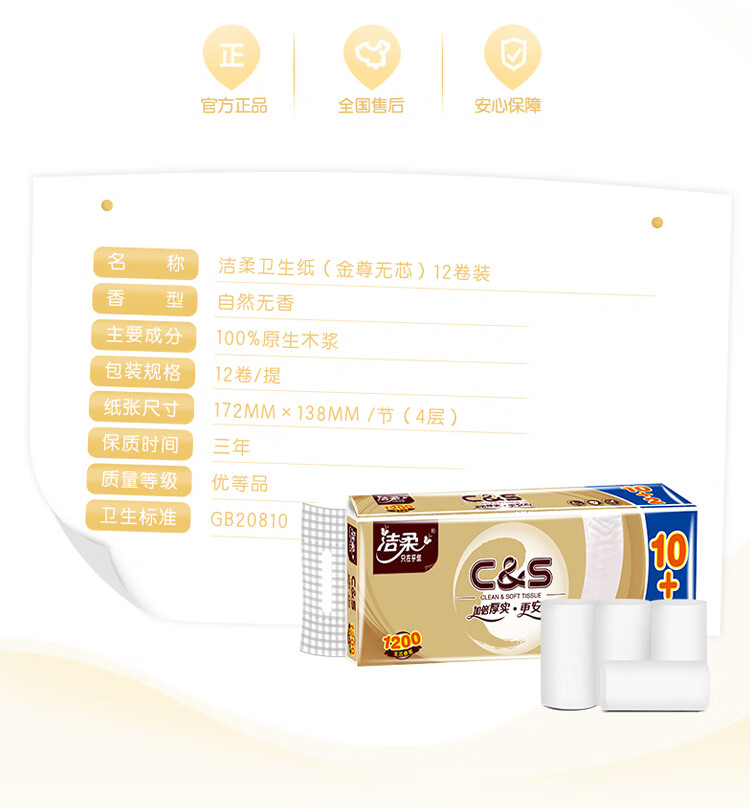 商品名称:C&S/洁柔金尊无芯卫生纸4层100g*12卷