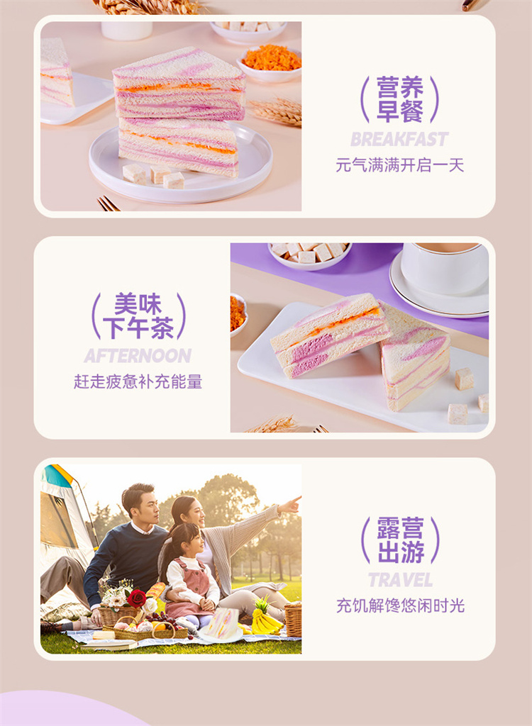 盼盼香芋味彩虹肉松三明治面包420g*2箱