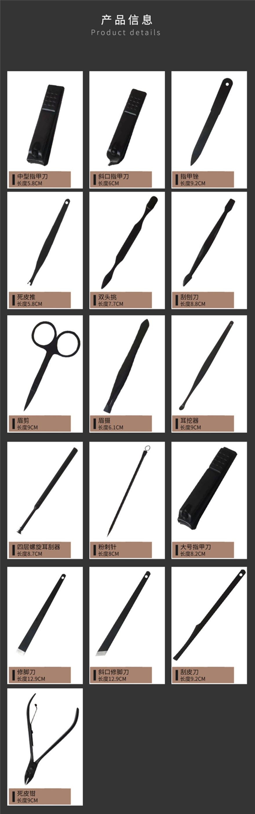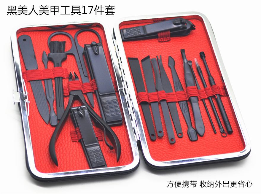 商品名称:寒铁黑美人美甲工具17件套装IRON-0107
