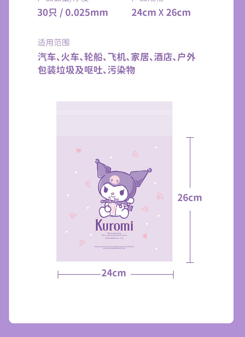 商品名称:宜洁酷洛米联名多用途粘贴式垃圾袋30只*2包KT-8152