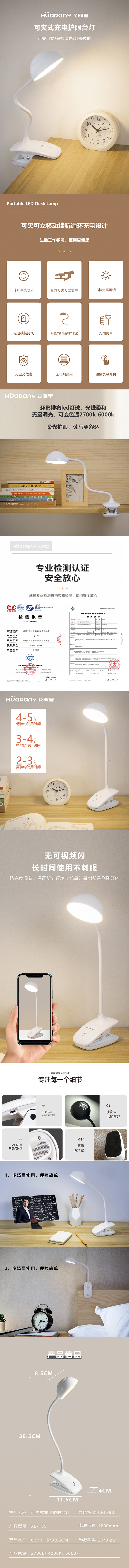 商品名称:Huapany/花畔里可夹式充电护眼台灯XE-189