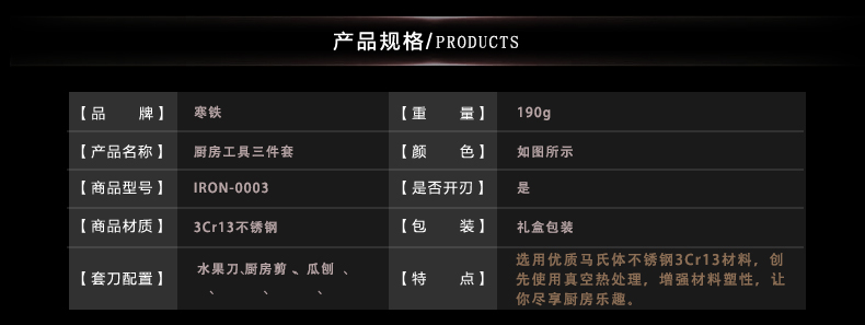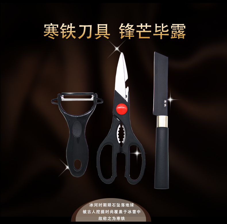 商品名称:寒铁厨房刀剪工具三件套IRON-0003