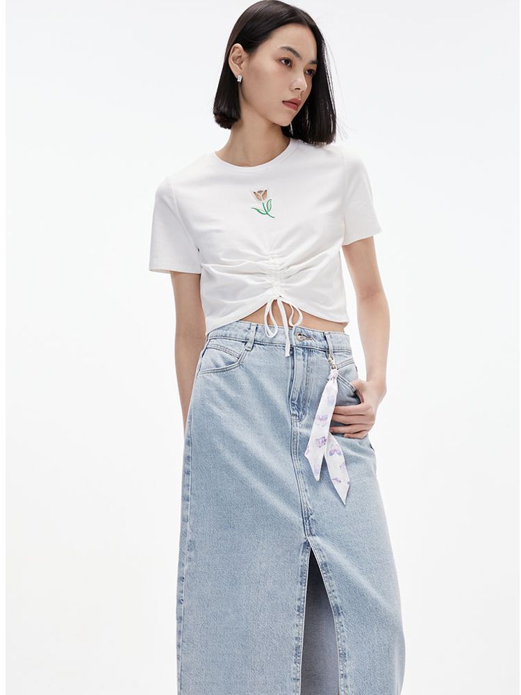【专柜款】春夏休闲简约高腰显瘦牛仔半身裙气质百搭时尚 776145
