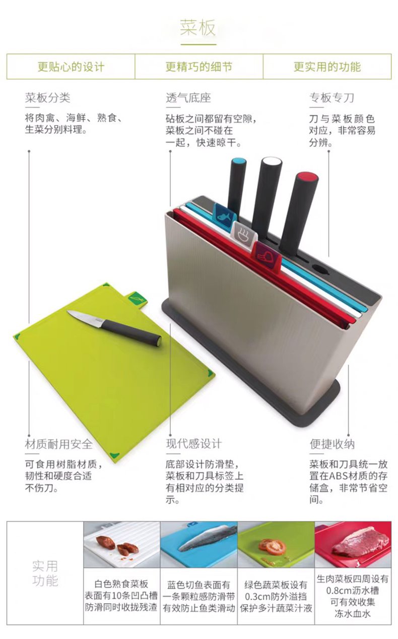 商品名称:寒铁分类菜板九件套刀IRON-0021