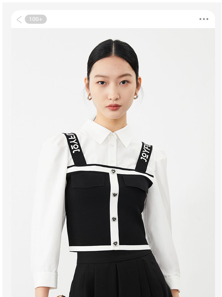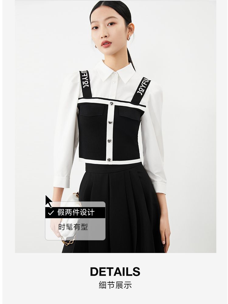 商品名称:【拼接假两件】春夏专柜同款优雅立体肩部设计显瘦衬衫女百搭时尚 440337