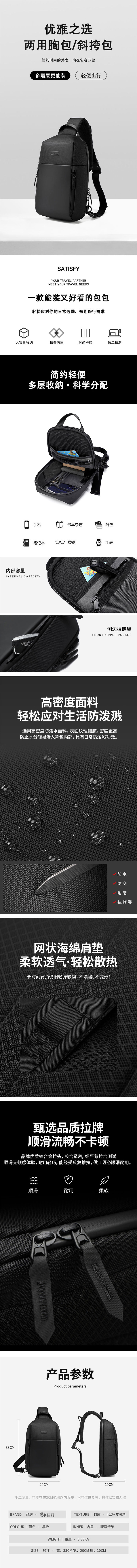商品名称:卜任舒胸包斜挎包-黑色BRS-24122