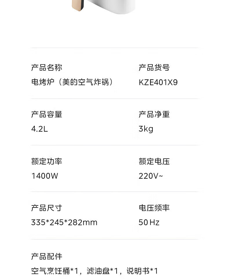 商品名称:Midea/美的4.2升空气炸锅KZE401X9