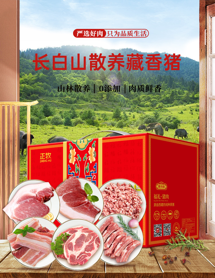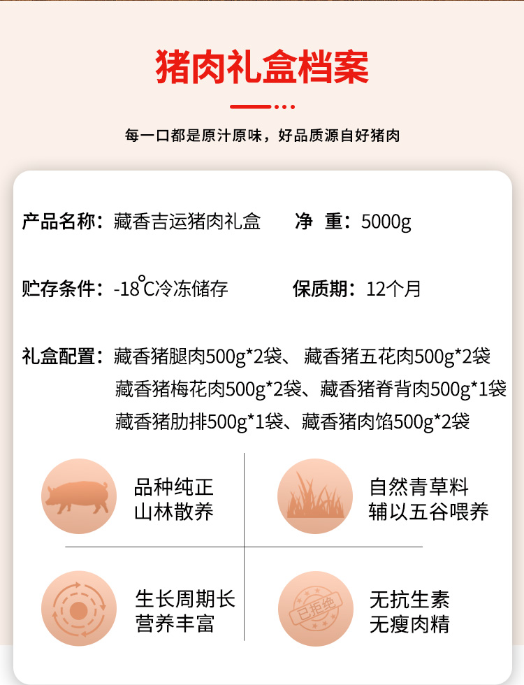 商品名称:【京东/顺丰配送】正牧蒙肉联吉运藏香猪肉礼盒5000g