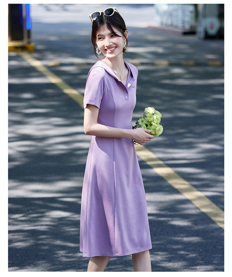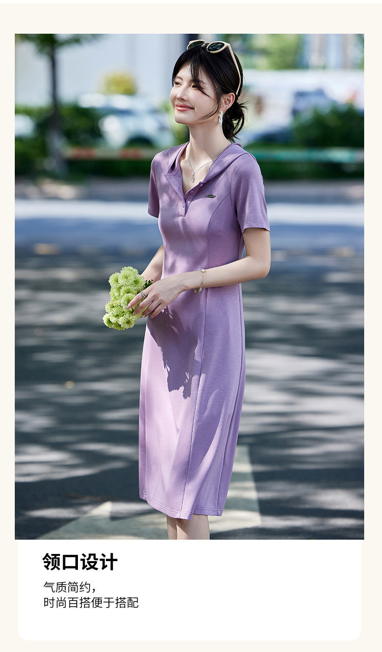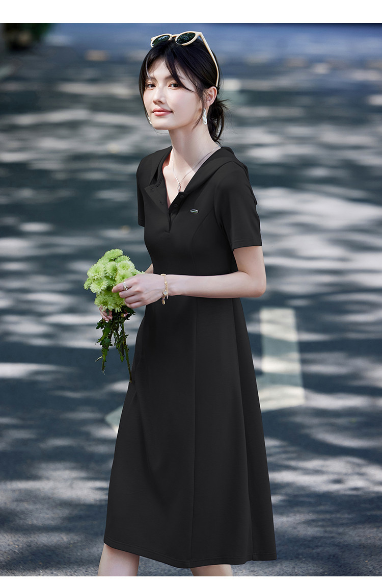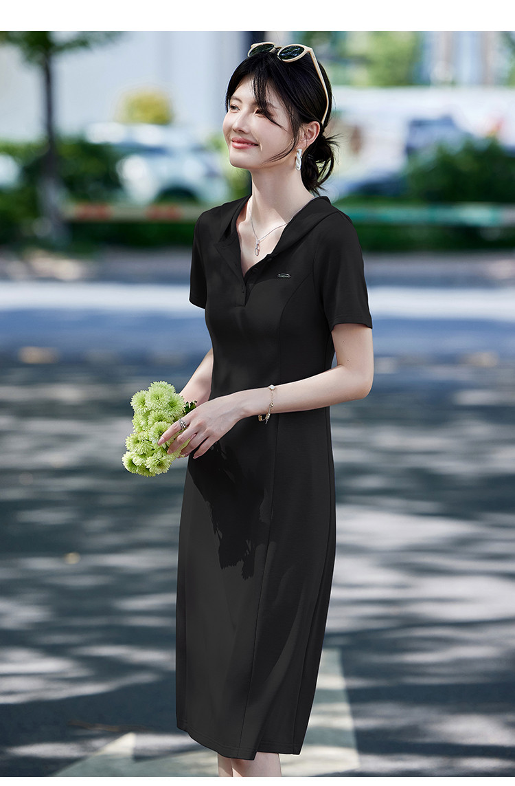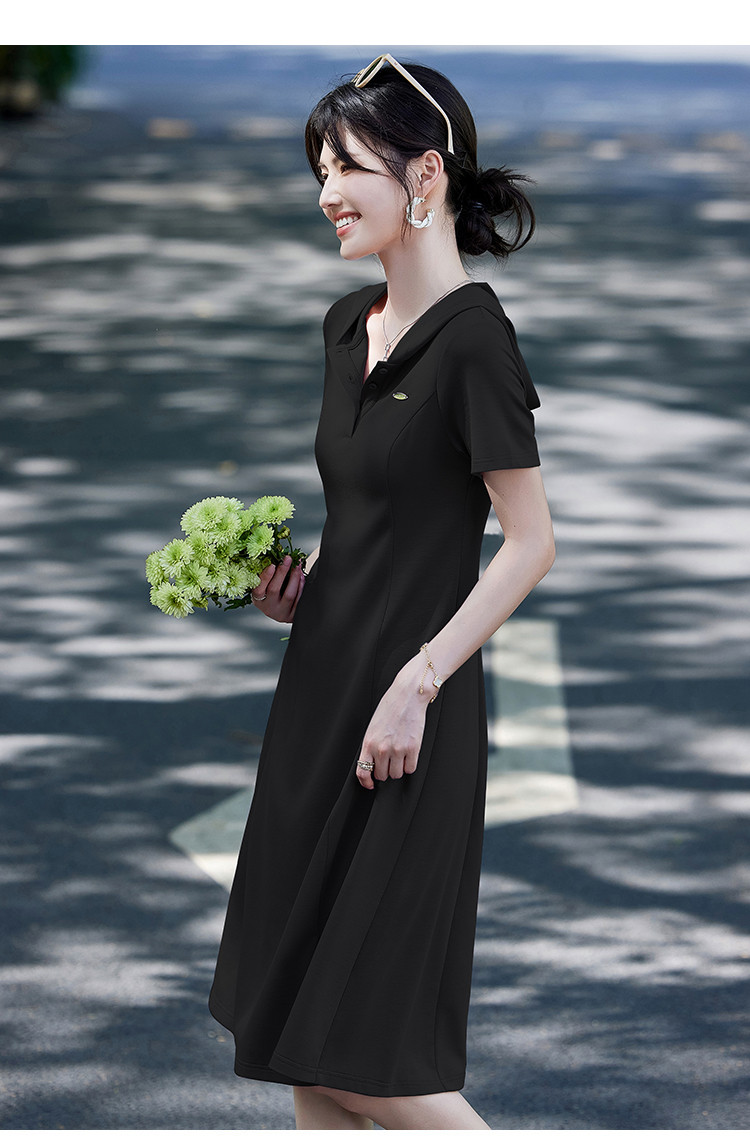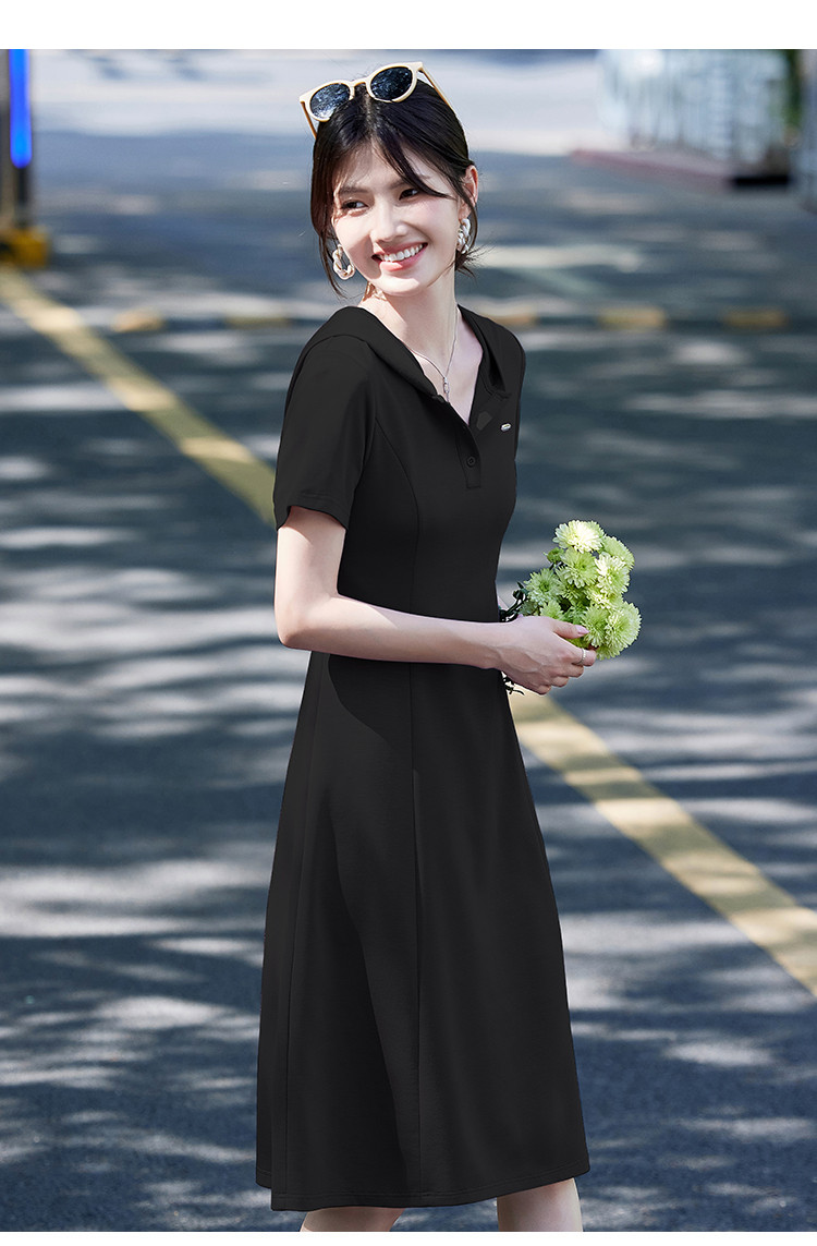 法式气质polo连衣裙女夏季2025修身显瘦下摆开叉中长裙 780511