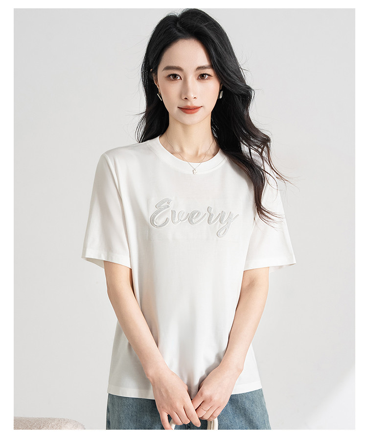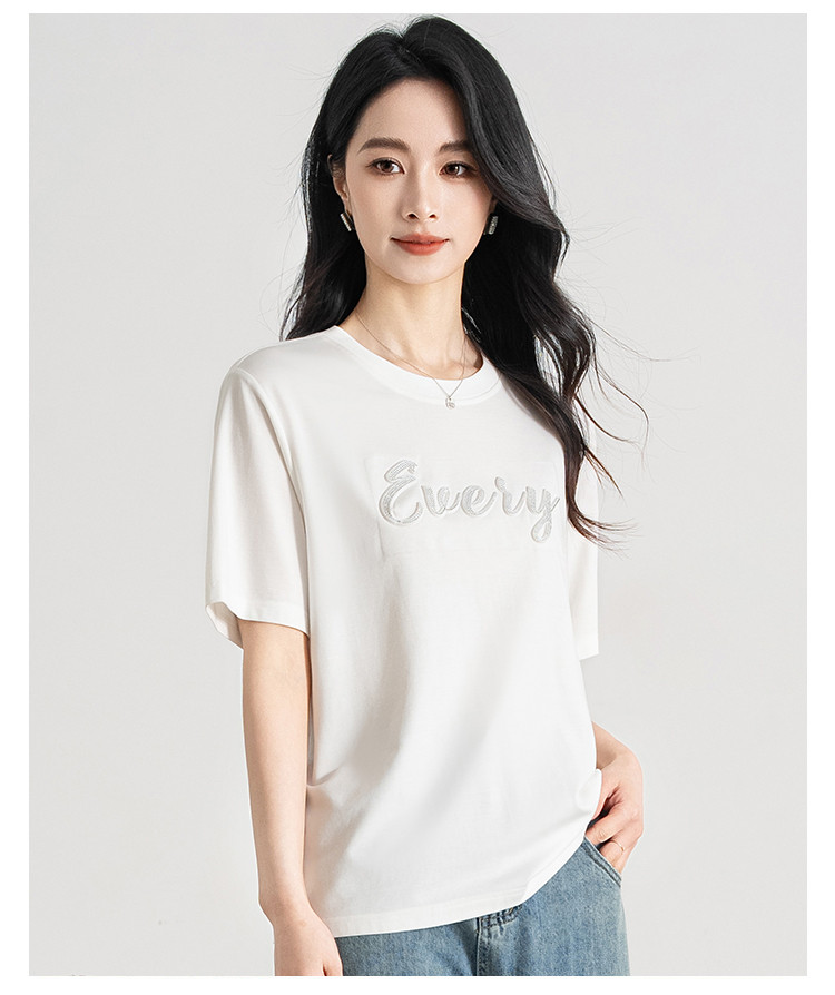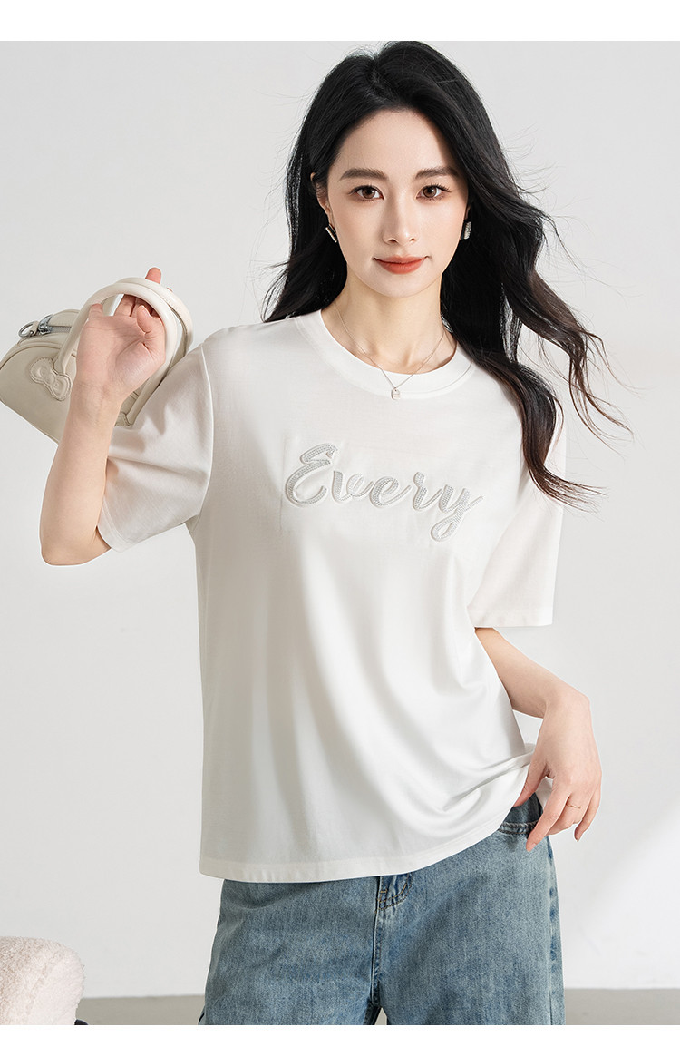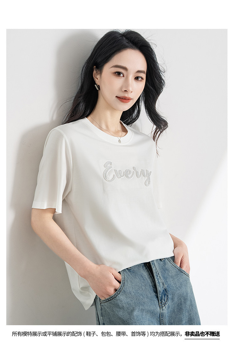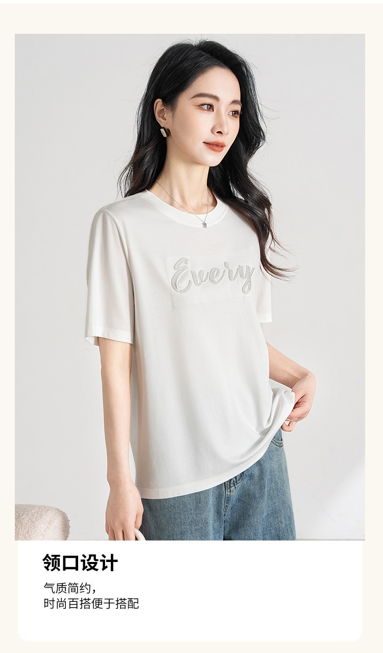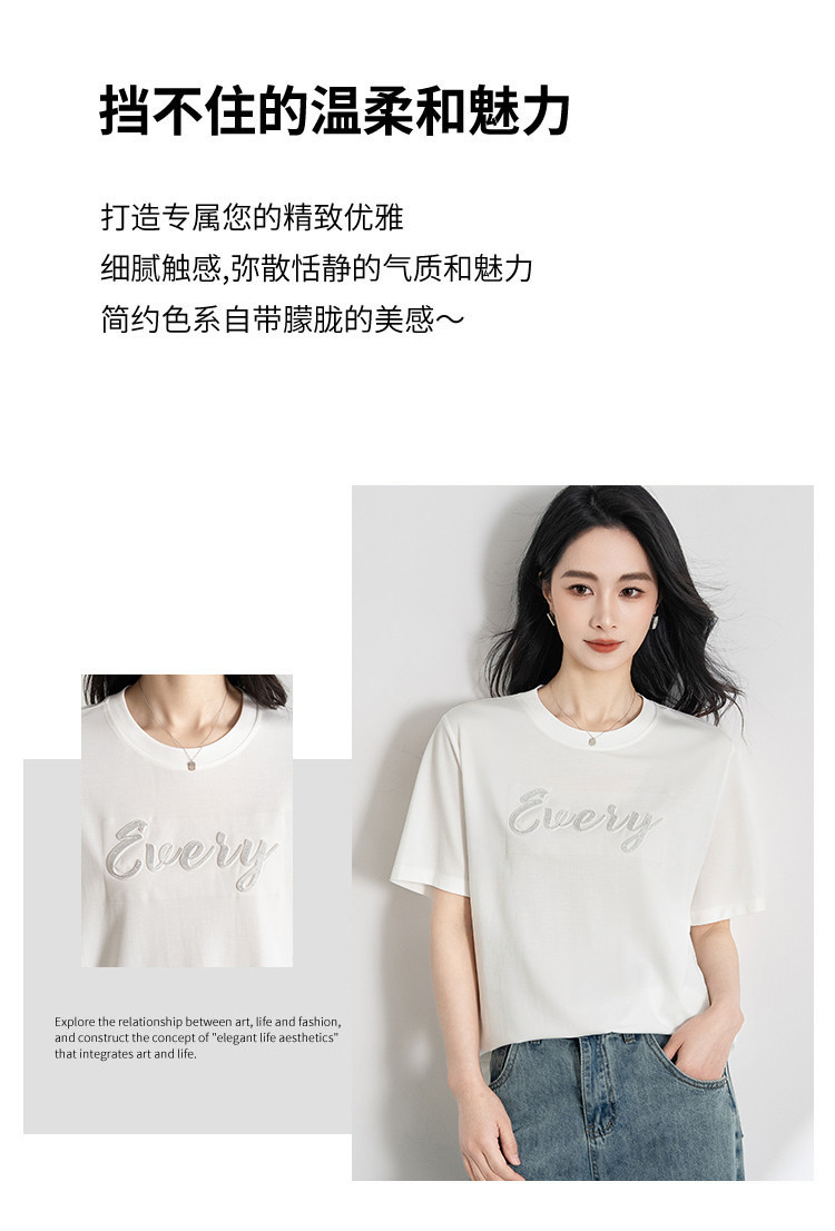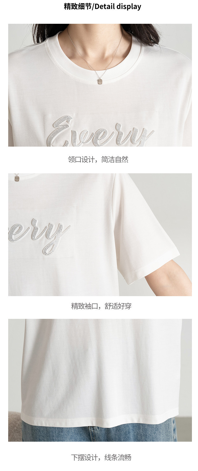 商品名称:【字母烫钻】设计感短袖t恤女夏季2025落肩袖宽松显瘦短袖t 696287