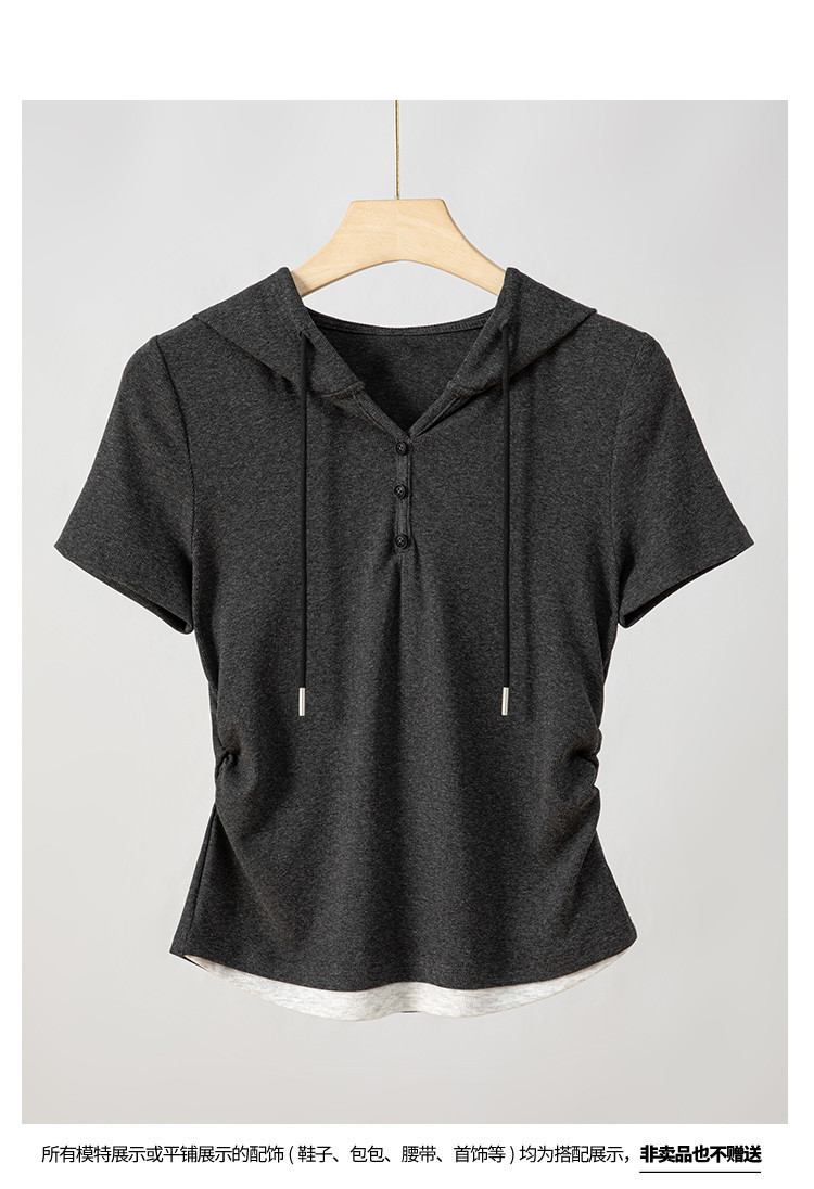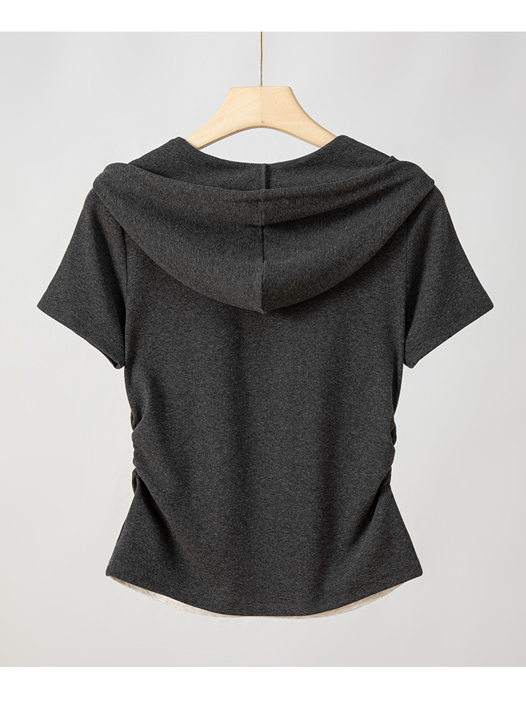 【智性穿搭】时髦针织短袖女连帽2025夏季高级感连帽针织上衣 622559