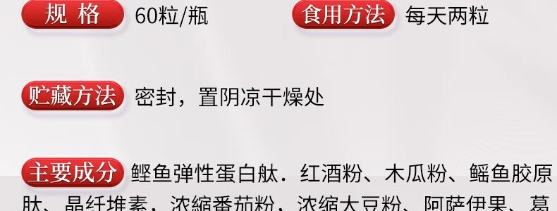 商品名称:美国 安美奇 鲣鱼弹性蛋白肽复合片 60粒/瓶