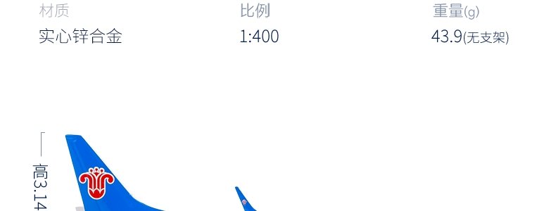 商品名称:南航文创 飞机模型和田号B737-800 9.88cm(无支架)