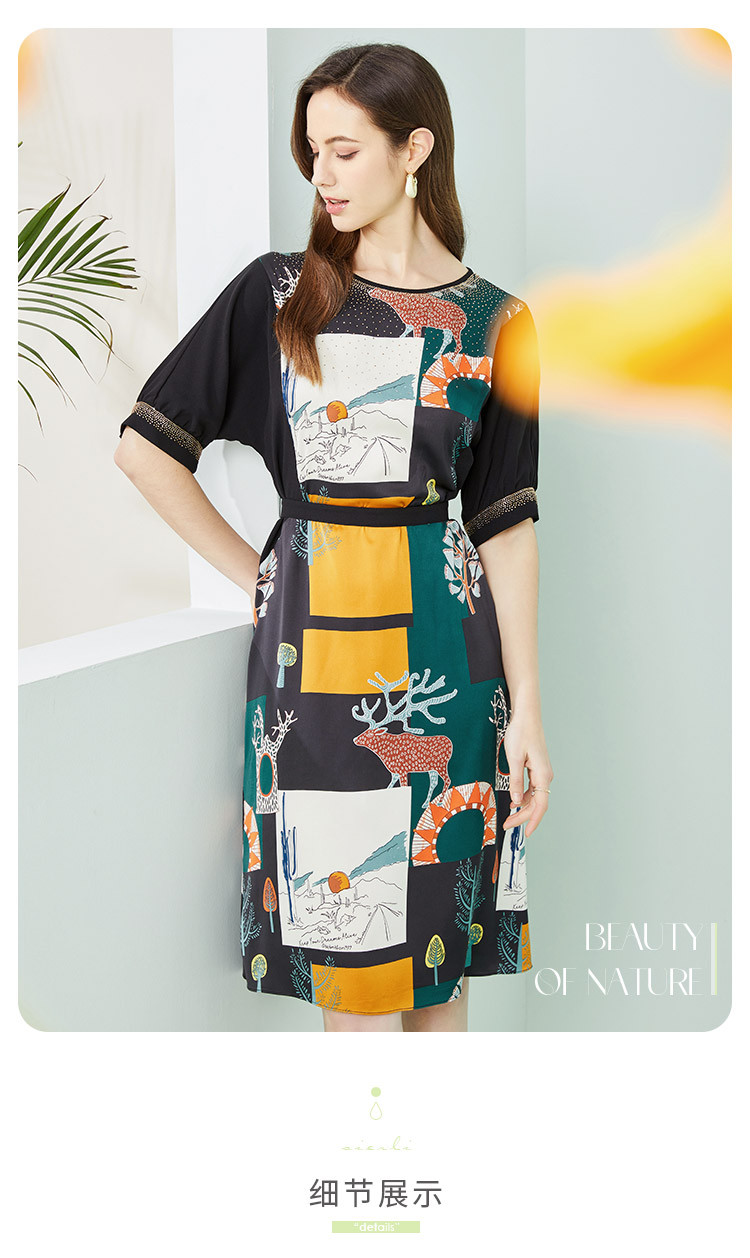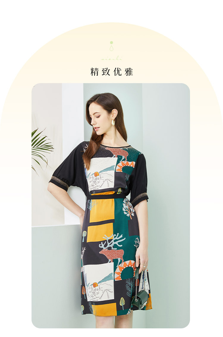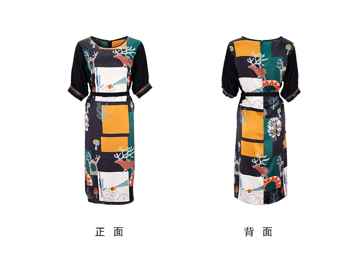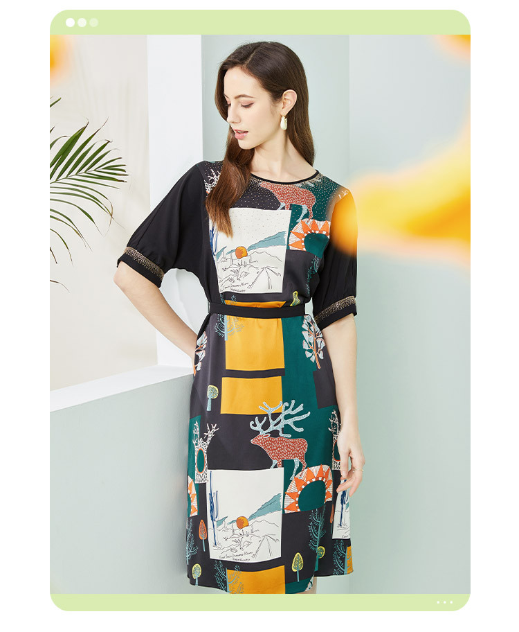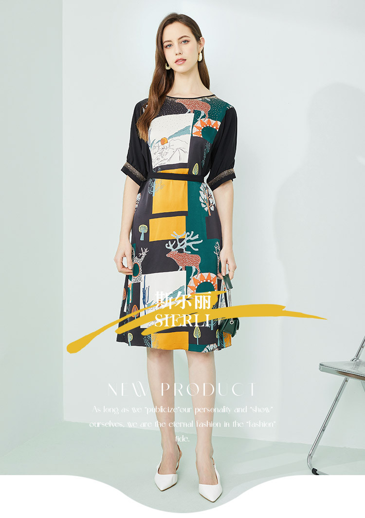 商品名称:商场同款春季优雅绚烂印花通勤拼接圆领连衣裙 163487