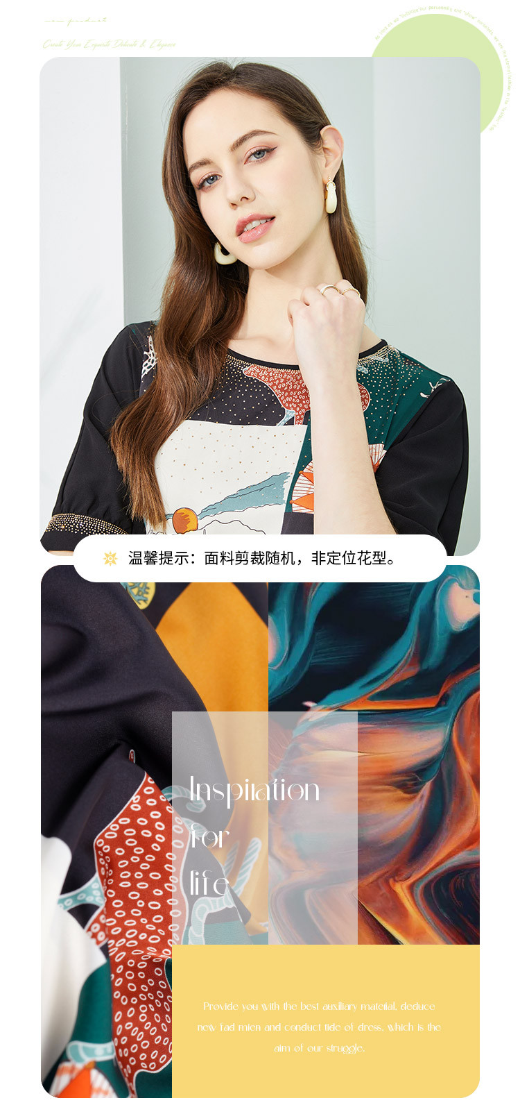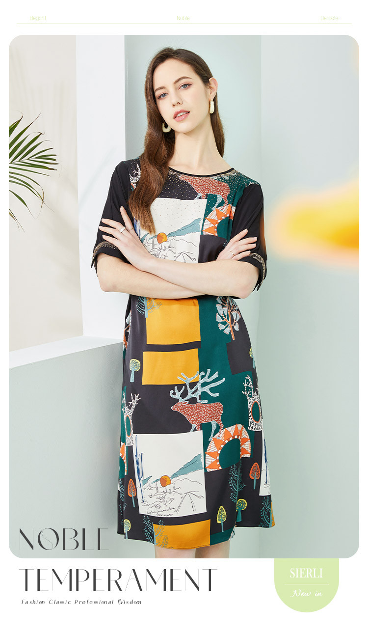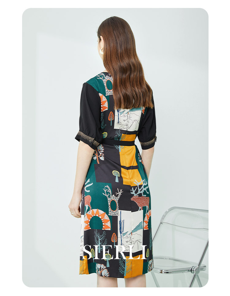 商品名称:商场同款春季优雅绚烂印花通勤拼接圆领连衣裙 163487